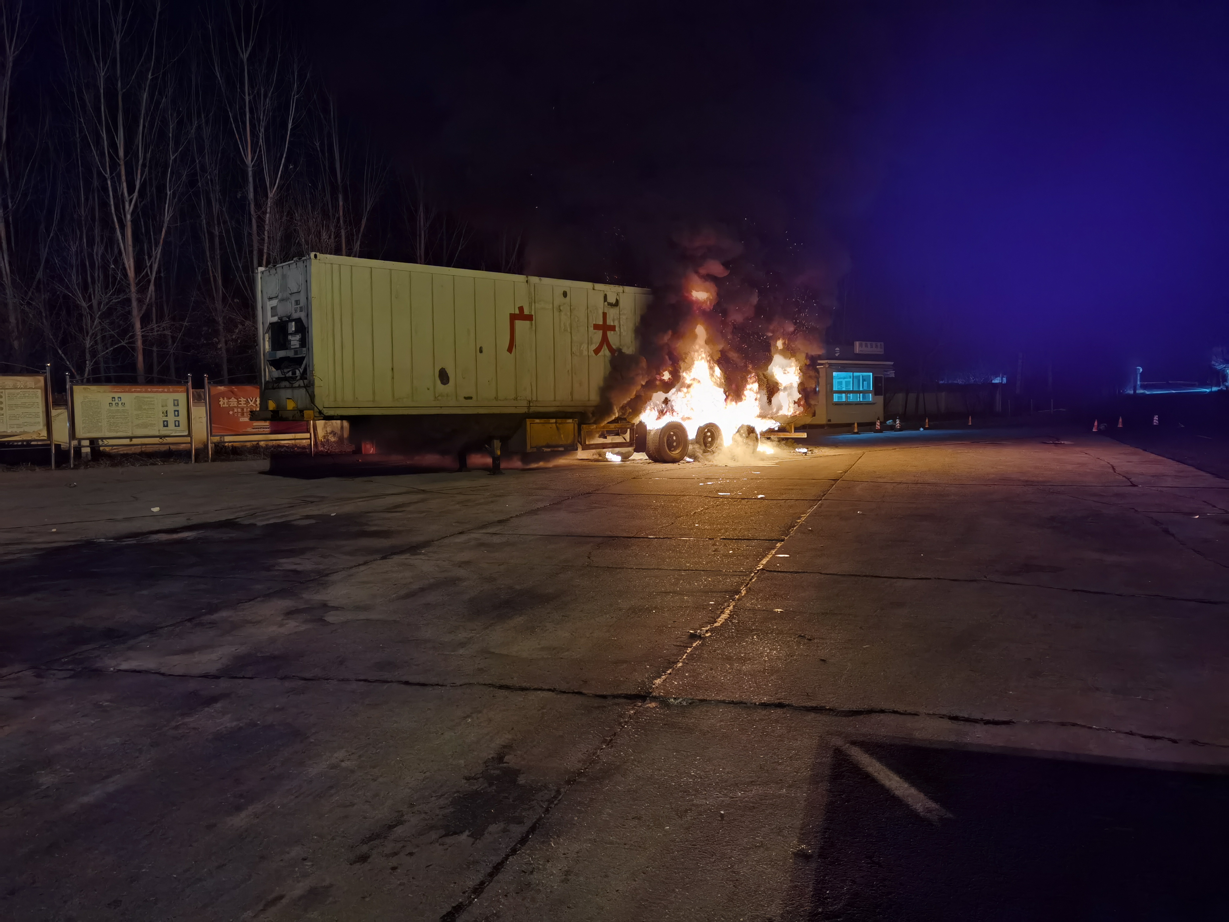 两分钟后,服务区工作人员赶到现场,组织人员使用灭火器及水桶灭火,并第一时间将车辆起火情况报告至牛驼分公司及燕赵驿行公司值班室。在上级领导的指导下,安排专人疏散附近车辆,对围观拍照人员进行劝阻,控制舆情传播。并根据火势,及时向当地消防部门报警,同时指挥司机将车头与车厢分离,以减少车主损失。
