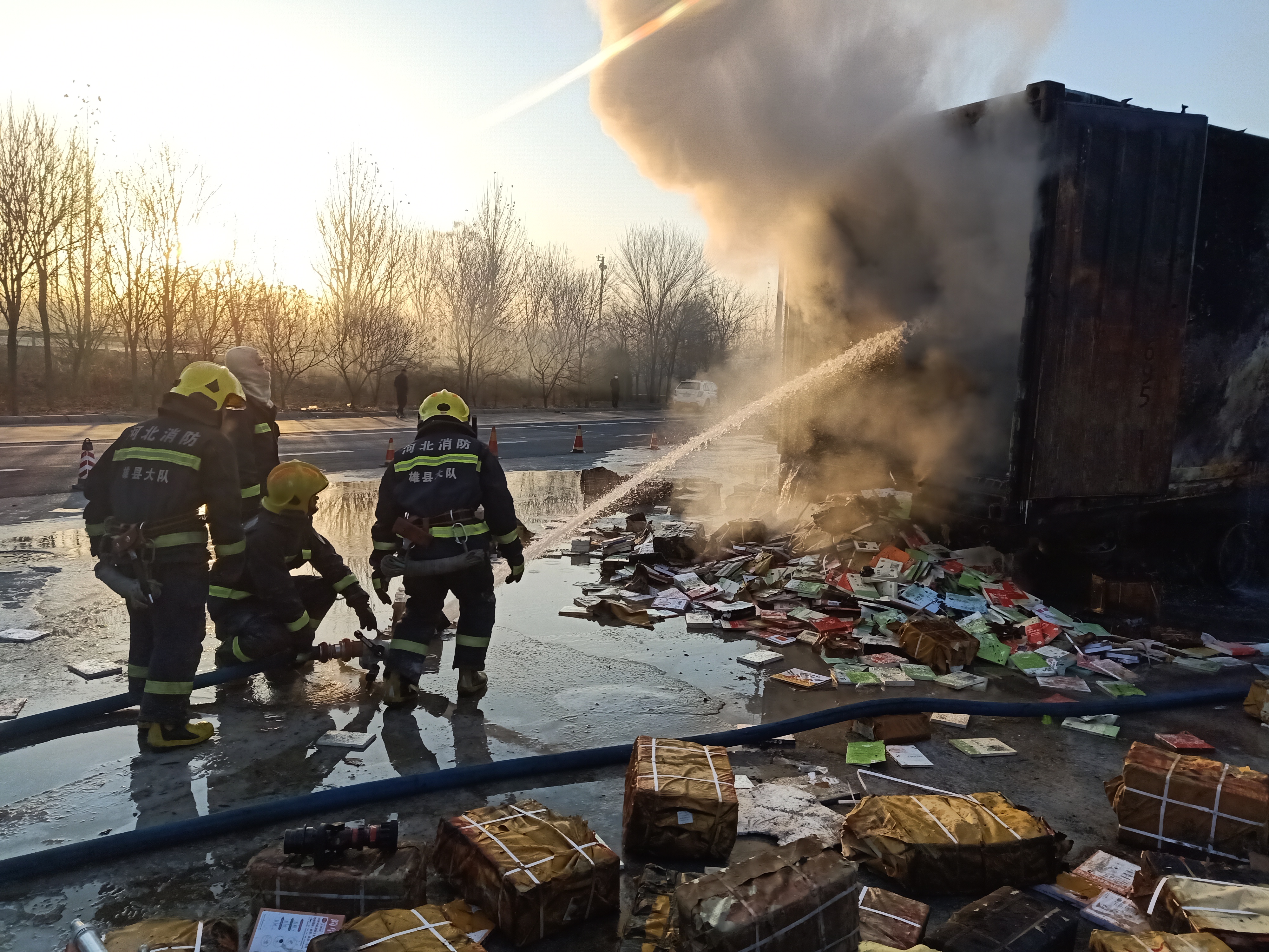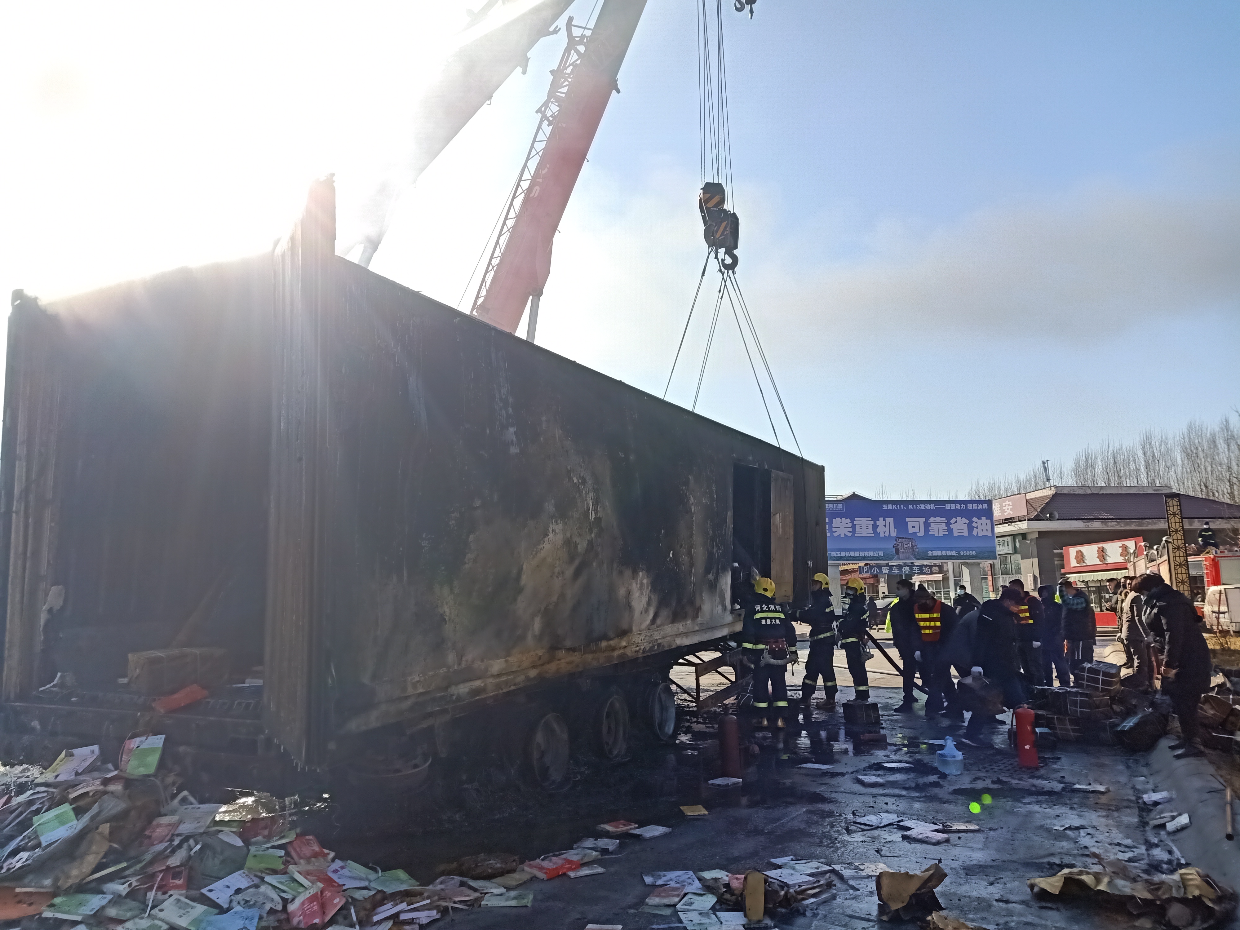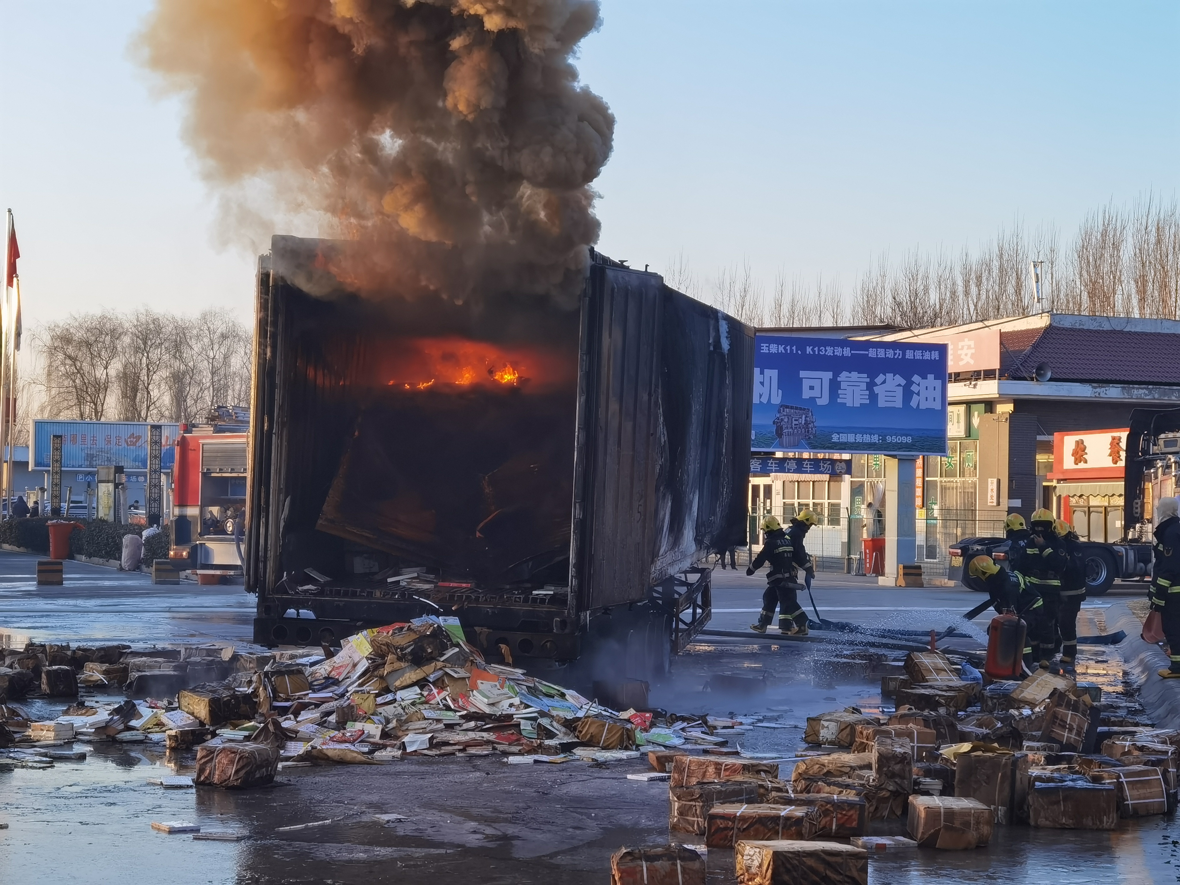 6点10分、6点19分,两辆消防车分别先后抵达起火现场。消防人员到达后,停车区工作人员积极协助、配合,并打开消防栓提供水源。因集装箱内货物为书籍等易燃物,且堆垛密集,明火扑灭后,车厢内仍不时出现着火点,难以一次性彻底扑灭。