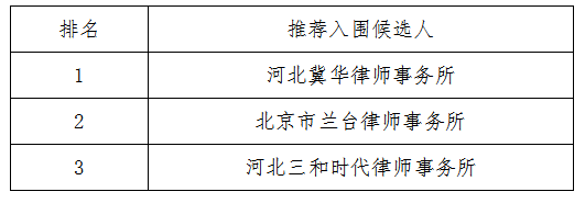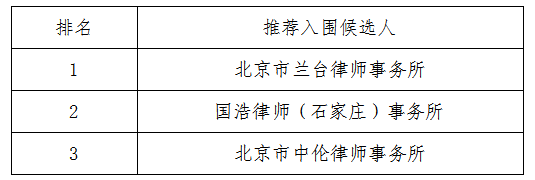 评审结果经公示无异议,履行内部程序后,排名第一的入围候选人将被推荐为入围律师事务所。