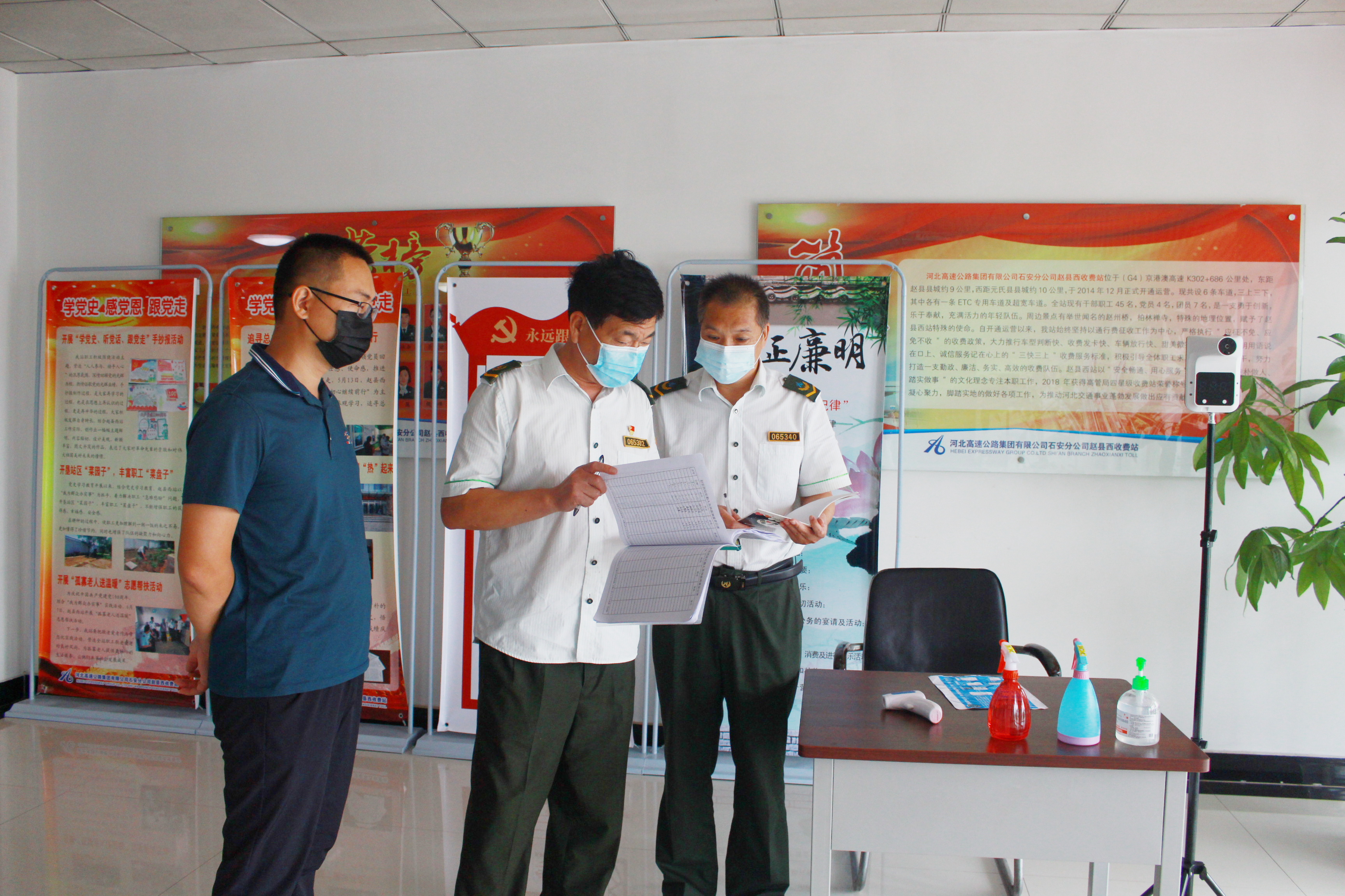 一是加强用电用气用火安全管理,针对收费岗、发电机房、配电室、食堂等重点部位进行全面排查,对用电线路以及收费设施、机电设备进行维护,确保设施设备正常运转。二是严格危险源管控,对站区内消防器材、应急灯等消防设备进行逐一排查,确保罐体完好、压力正常,对站区危化品安全状态进行检查,筑牢消防安全管理基础。三是对职工食堂的食材采购、设备消毒、人员操作以及环境卫生等食品安全问题进行检查,要求食堂工作人员严把食材采购关,做到生熟分开,做好环境消杀,保持食堂干净整洁,确保职工“舌尖”上的安全。四是检查防盗设施,对票证室、职工宿舍、收费岗亭的门窗以及报警设备进行检查,针对检查出的收费岗亭部分窗户卡扣损坏等问题提出整改要求,确保人身、财产安全。五是对“岗前安全提醒三分钟”落实是否到位进行检查,通过查看安全提醒记录,进一步强化收费人员安全管理,坚决遏制各类安全事故的发生。六是以走现场和查记录的方式对疫情防控措施落实情况进行检查,深入到收费现场对一线职工是否严格落实好个人防护措施进行检查,对三个岗位测温记录、消杀记录、外来人员登记以及防疫物资发放记录等资料进行查看,确保织密“防护网”,筑牢“防控墙”。