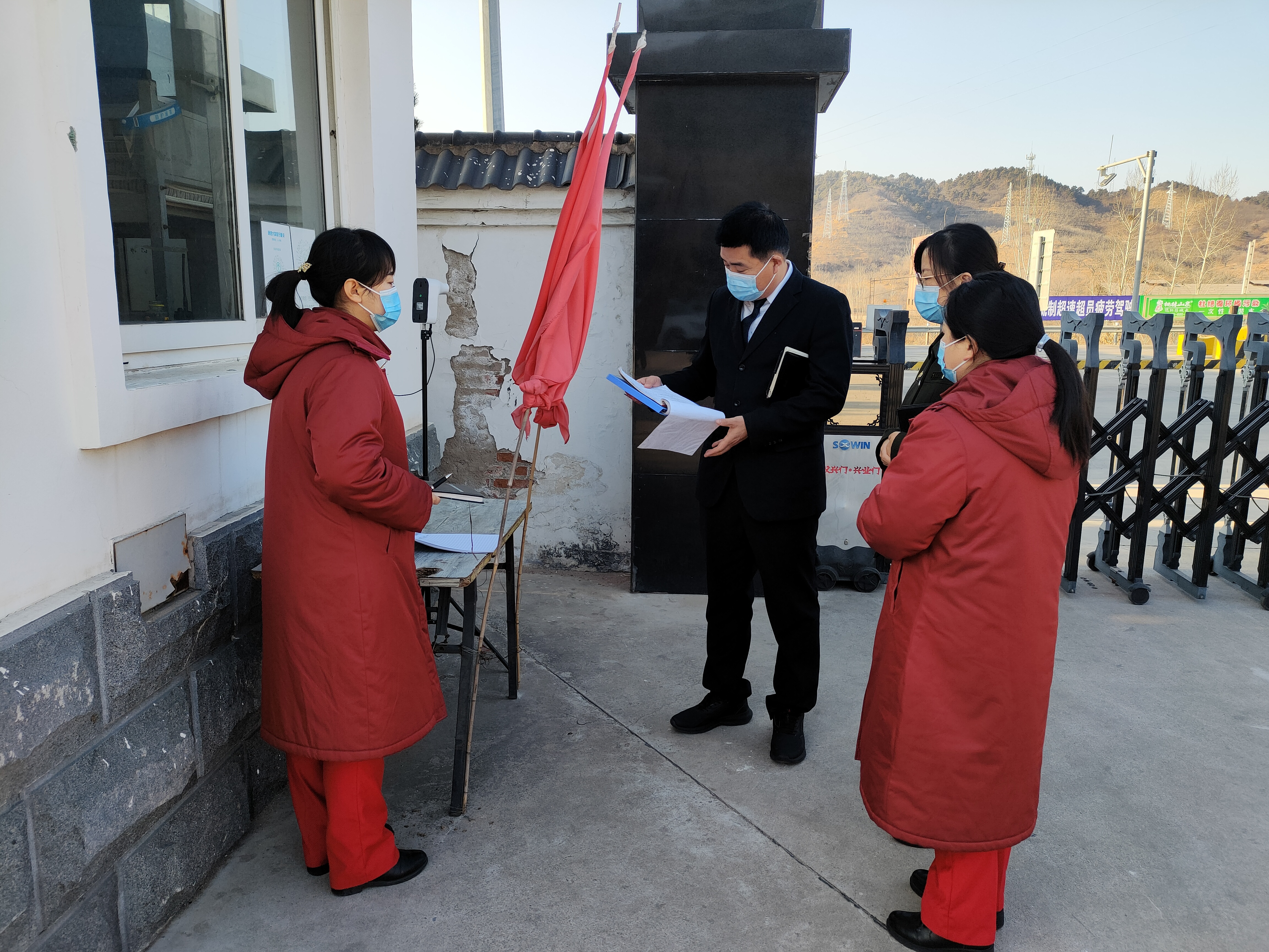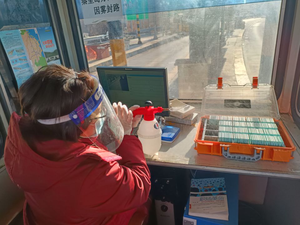 二是严格落实疫情防控措施。对宿办楼、食堂、收费岗亭等公共场所做好消毒工作,收费员同时对发出和回收的通行卡随时进行消毒。由专人值守门卫,严禁外来人员进出,每日上班人员和有工作需要的人员务必测量体温、检查行程卡和健康码,均正常才能进入。