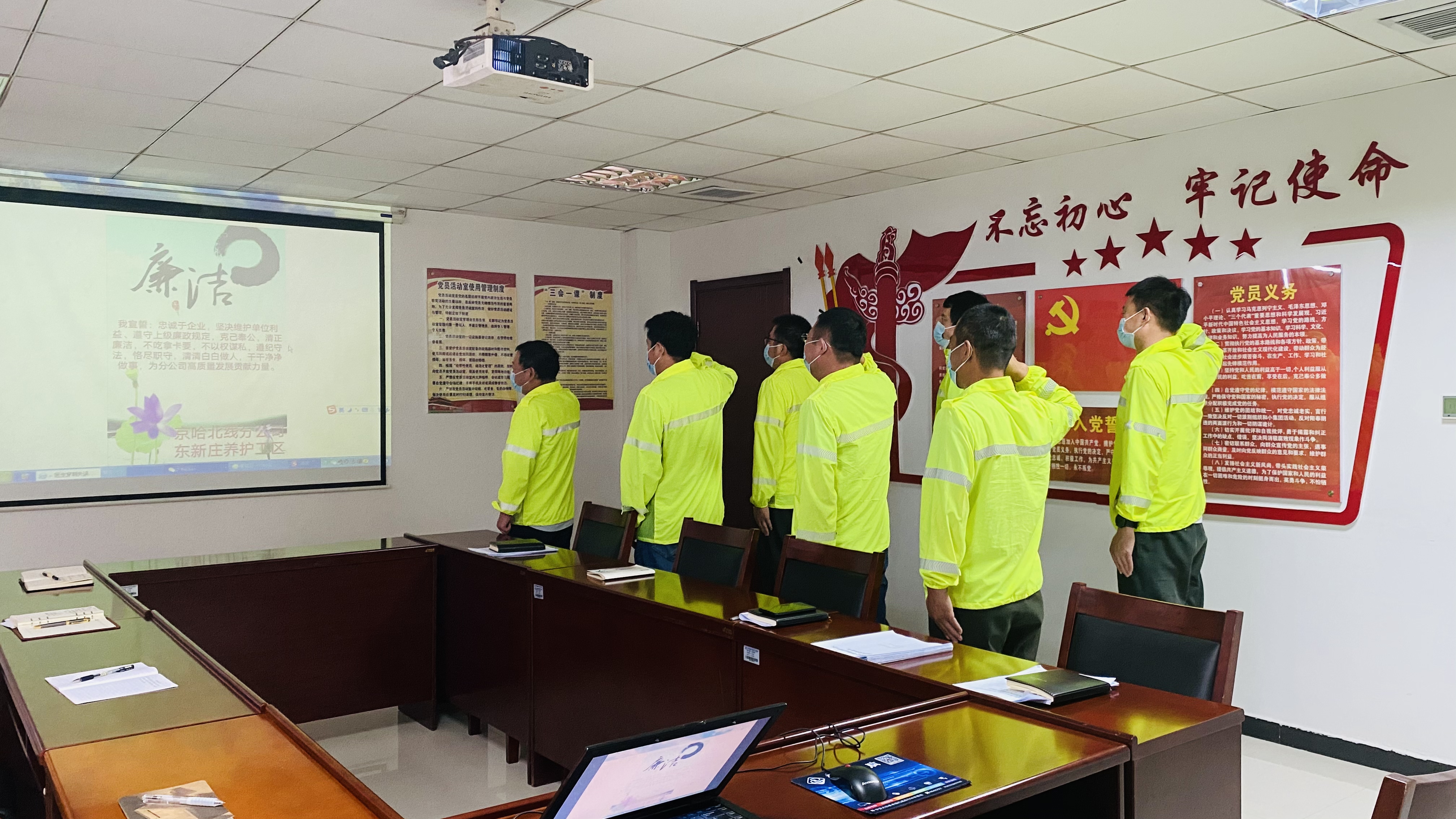 三是加强队伍建设,构筑预防体系。养护工区以廉政风险点为基点制作了《廉洁从业承诺书》,在看完警示片后全体职工签订了承诺书,随后在工区负责人带领下全体职工进行了廉洁从业宣誓。通过强化队伍建设,着力培养廉洁自律的职业操守,构筑自警自励的预防体系。