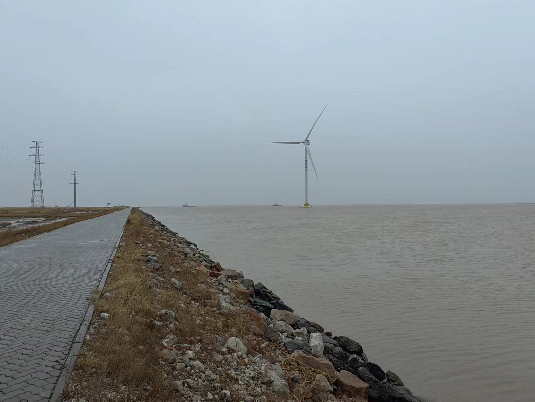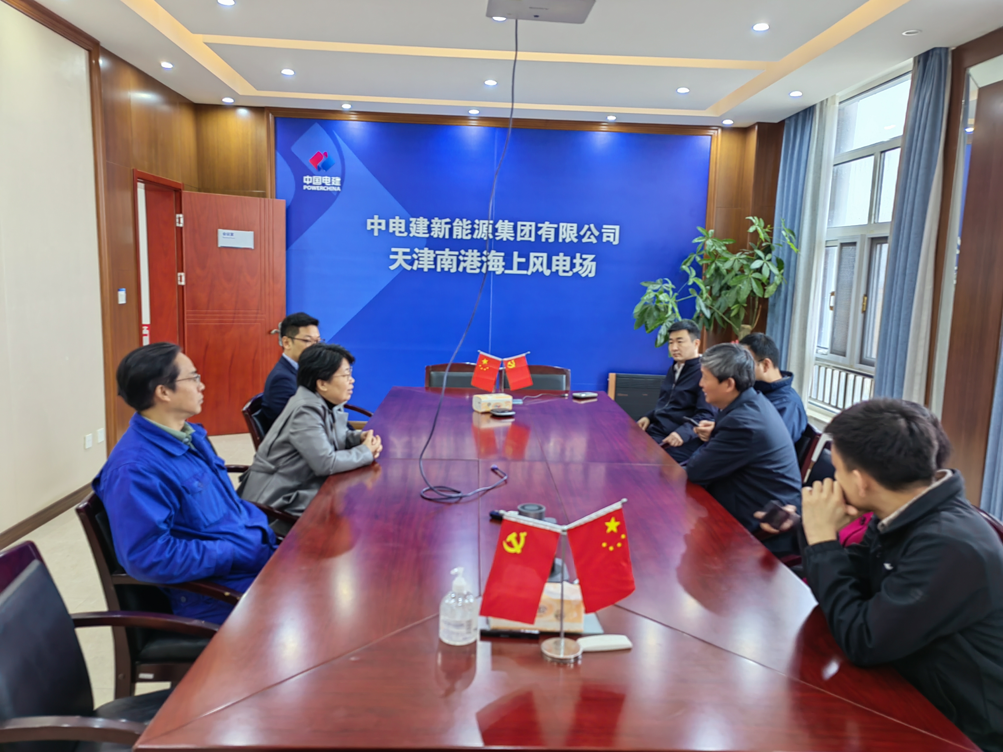 会后一行人等前往中电建新能源集团有限公司天津南港海上风电场进行实地参观。运维人员对风电场升压站、机房控制系统进行了详细介绍。为对风电场有更加直观的认识,一行人等前往9号风塔塔底进行参观。