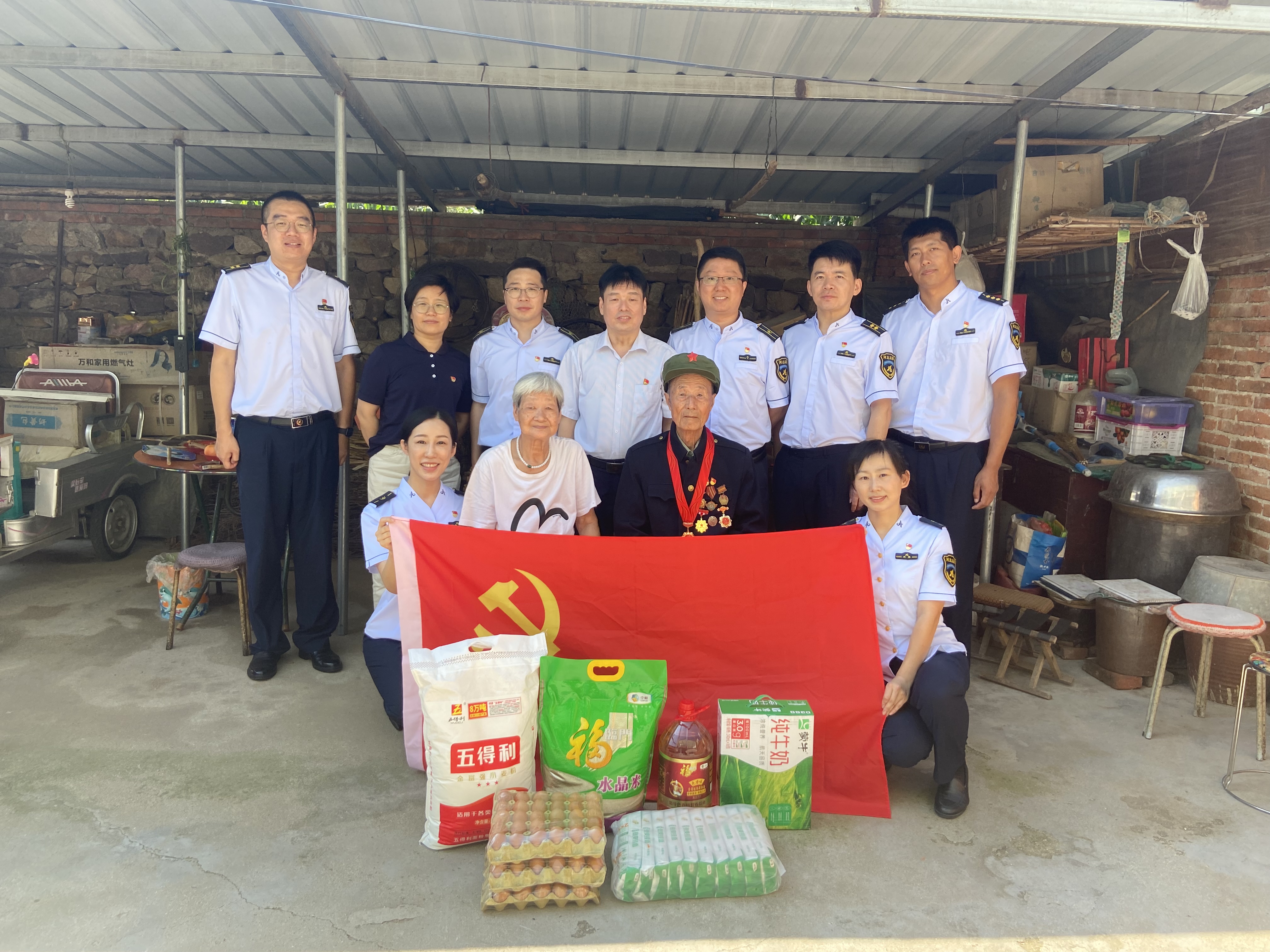 活动最后,支部一行9人在青龙县官场乡山岭高村工作人员的带领下,来到91岁的杨伦老红军家中进行慰问。党支部为他送去了米面油鸡蛋牛奶等慰问品,张书记代表支部全体党员向老人表达了亲切的问候和崇高的敬意。在详细询问了杨老的生活情况和身体状况后,全体党员围坐在杨老身旁,认真聆听他的从军故事和曾经的峥嵘岁月,每一个故事都让在场党员深切感受到老人对党和国家的无私付出和深深热爱。