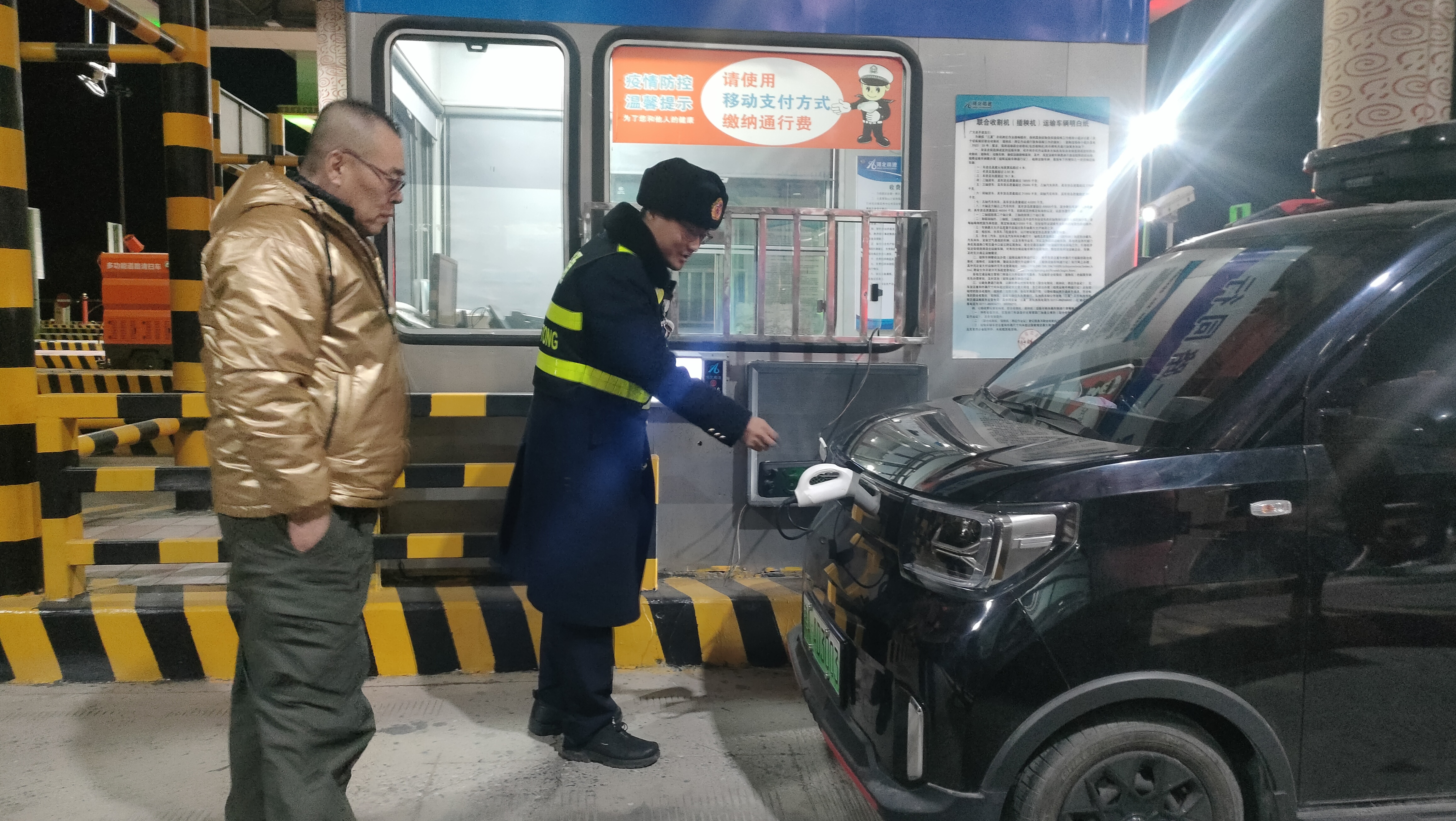 “太感谢你们了,帮了我大忙了!”2月7日,清东陵收费站一辆新能源车电量告急,收费班长及时帮助该司机充电续航,获得连连称赞。