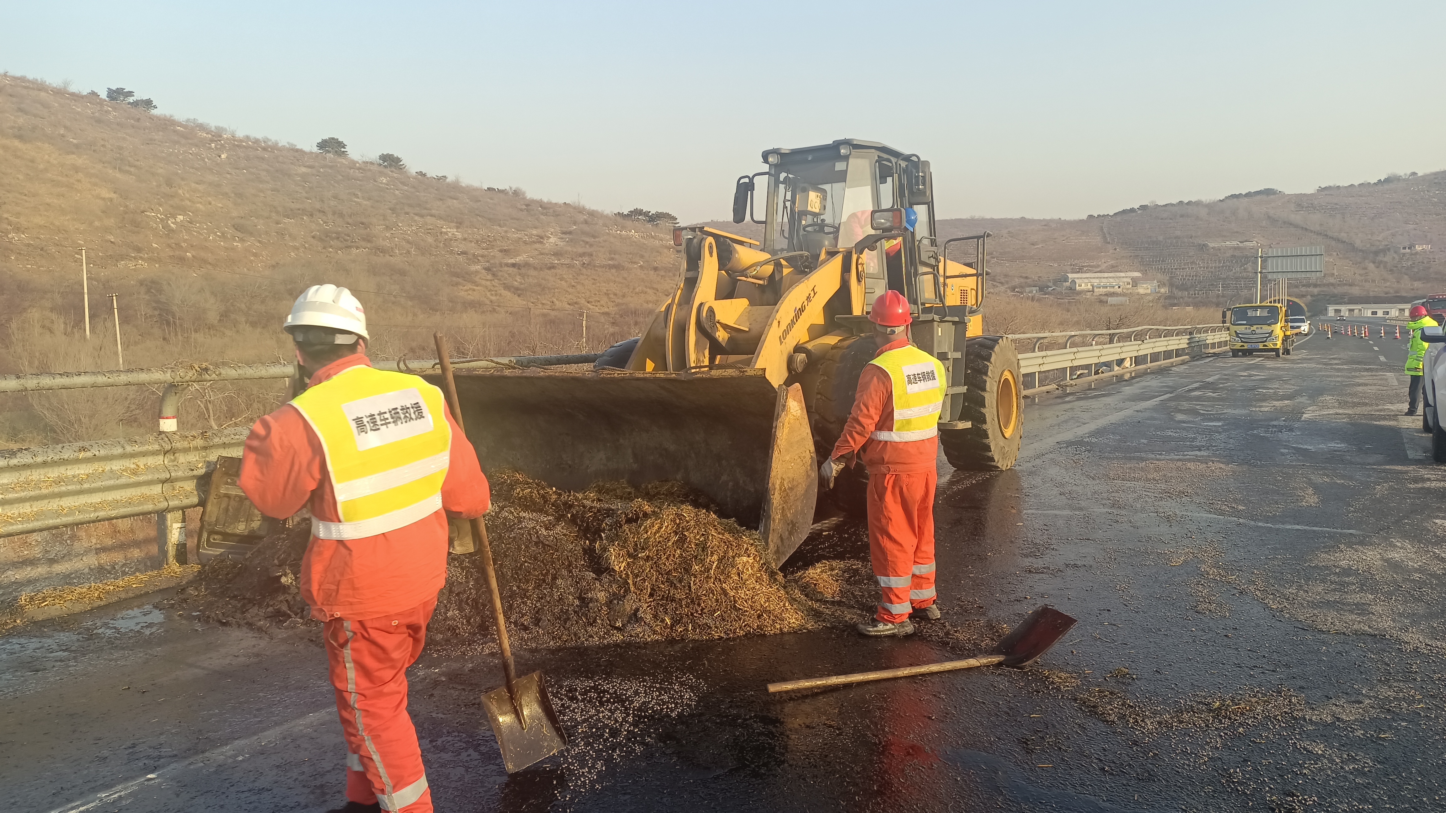 然而,灭火后的难题接踵而至。大量的消防用水在低温下迅速结冰,给过往车辆带来了极大的安全隐患。为此,分公司立刻调配京哈北养护作业队装载融雪剂,对重点结冰区域进行人工撒布和铲除;同时安排救援公司清障车辆和工作人员迅速清理现场,很快就实现了所有车道的安全畅通。
