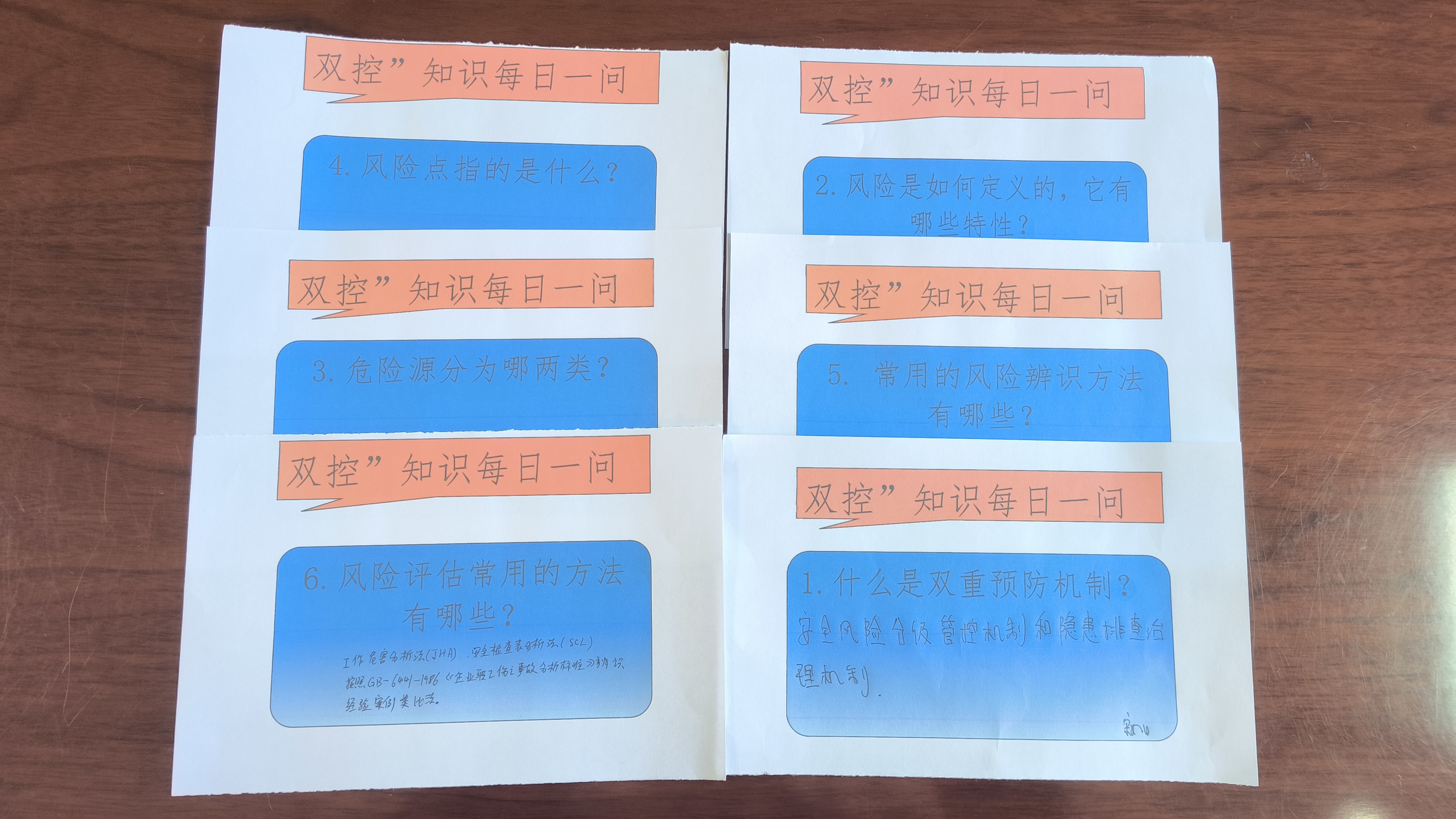 活动以“双控”安全知识为核心,题目内容紧紧围绕风险分级管控与隐患排查治理双重预防机制展开,涵盖了安全操作规程、应急处置方法、常见安全隐患识别等多个方面。题目形式丰富多样,既有考验理论知识的选择题、判断题,也有需要结合实际工作经验作答的简答题和案例分析题。职工们积极参与,认真作答。在遇到一些具有争议性的问题时,大家还展开了热烈的讨论,各抒己见,进一步加深了对安全知识的理解。