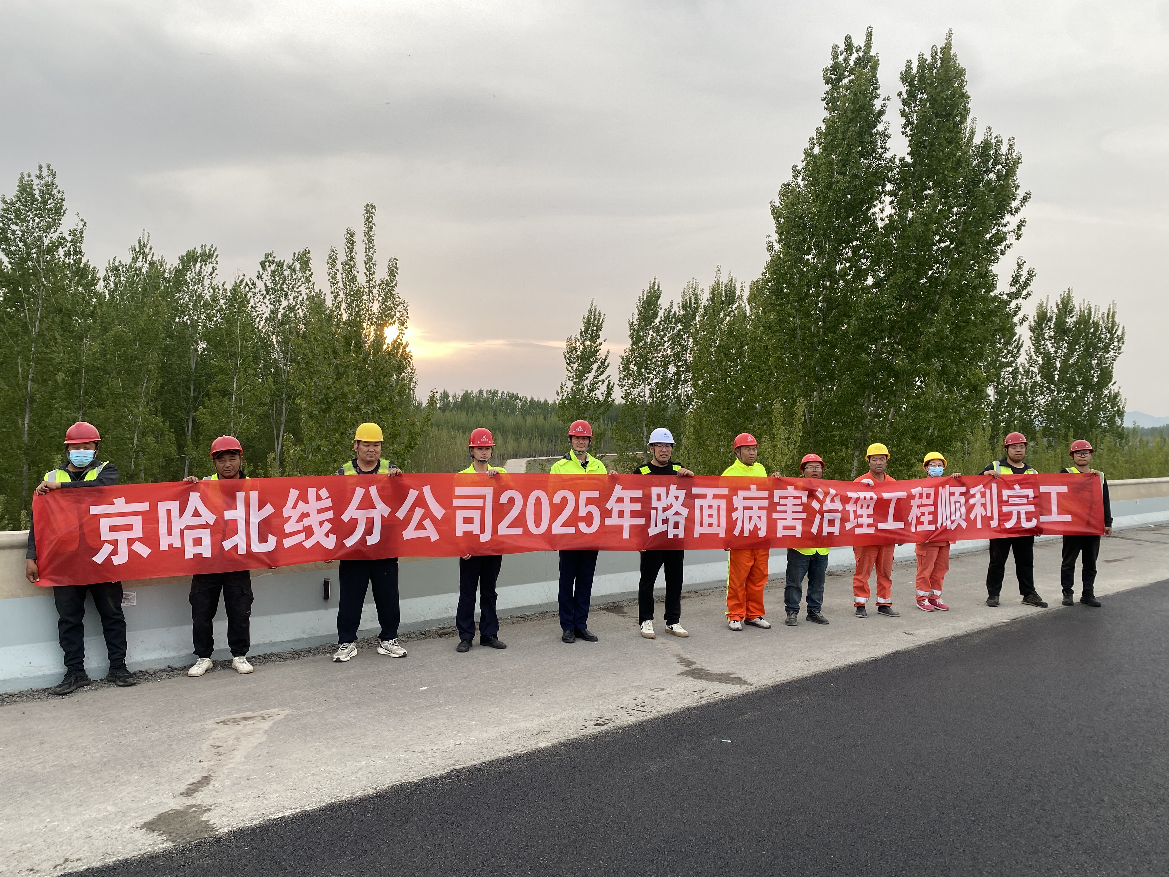 2025年4月20日,随着最后一车沥青混凝土的摊铺,京哈北线分公司2025年路面病害治理专项工程合同内项目顺利完工。完工日期比预定时间提前了40天,完成进度位列全集团公司路面病害专项工程第一名。