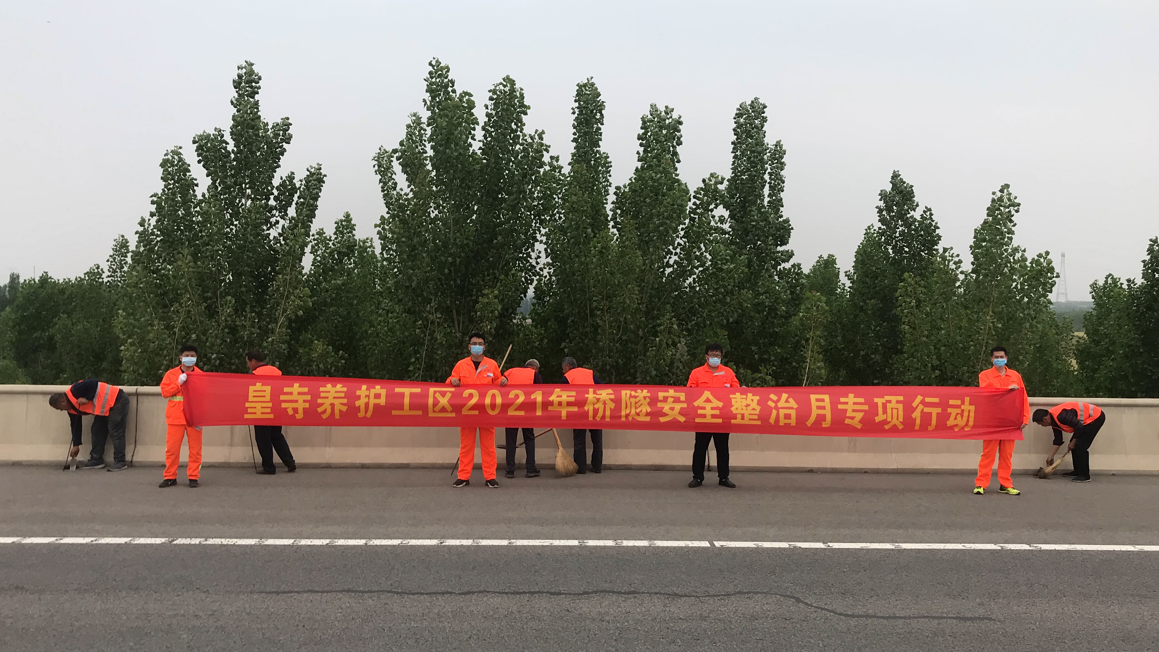本次桥梁安全整治专项行动,清理伸缩缝垃圾约5400米,疏通桥梁泄水孔约14000个,清理桥台垃圾约10方,清理桥下垃圾约1500方,并建立桥下非法侵占隔离点1处,修复限高门架2个,处理桥梁结构病害9处,积极与路政部门沟通行函2次,开展桥梁突发事件应急演练两次。