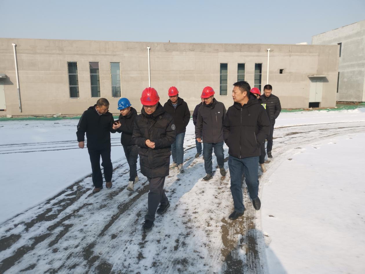1月18日,资源公司党总支书记、主要负责人张云鹏、运营管理部负责人杜石磊一行到康仙庄产业园指导调度工程工作,项目公司董事长、总经理陈世英,部门负责人,施工单位,监理单位相关负责人陪同考察。