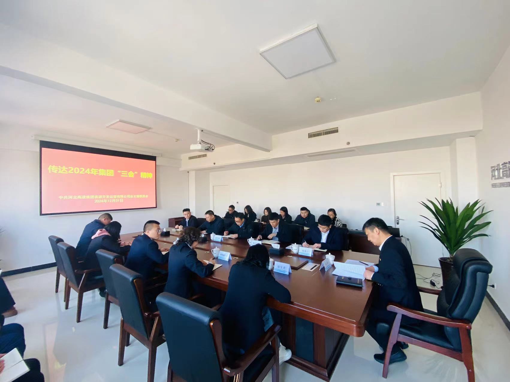 12月31日下午,资源公司召开党总支扩大会议,认真学习传达2024年集团公司“三会”会议精神。领导班子成员,总部各部室、所属各单位主要负责人、机关支部全体党员及职工代表共27人参加会议。