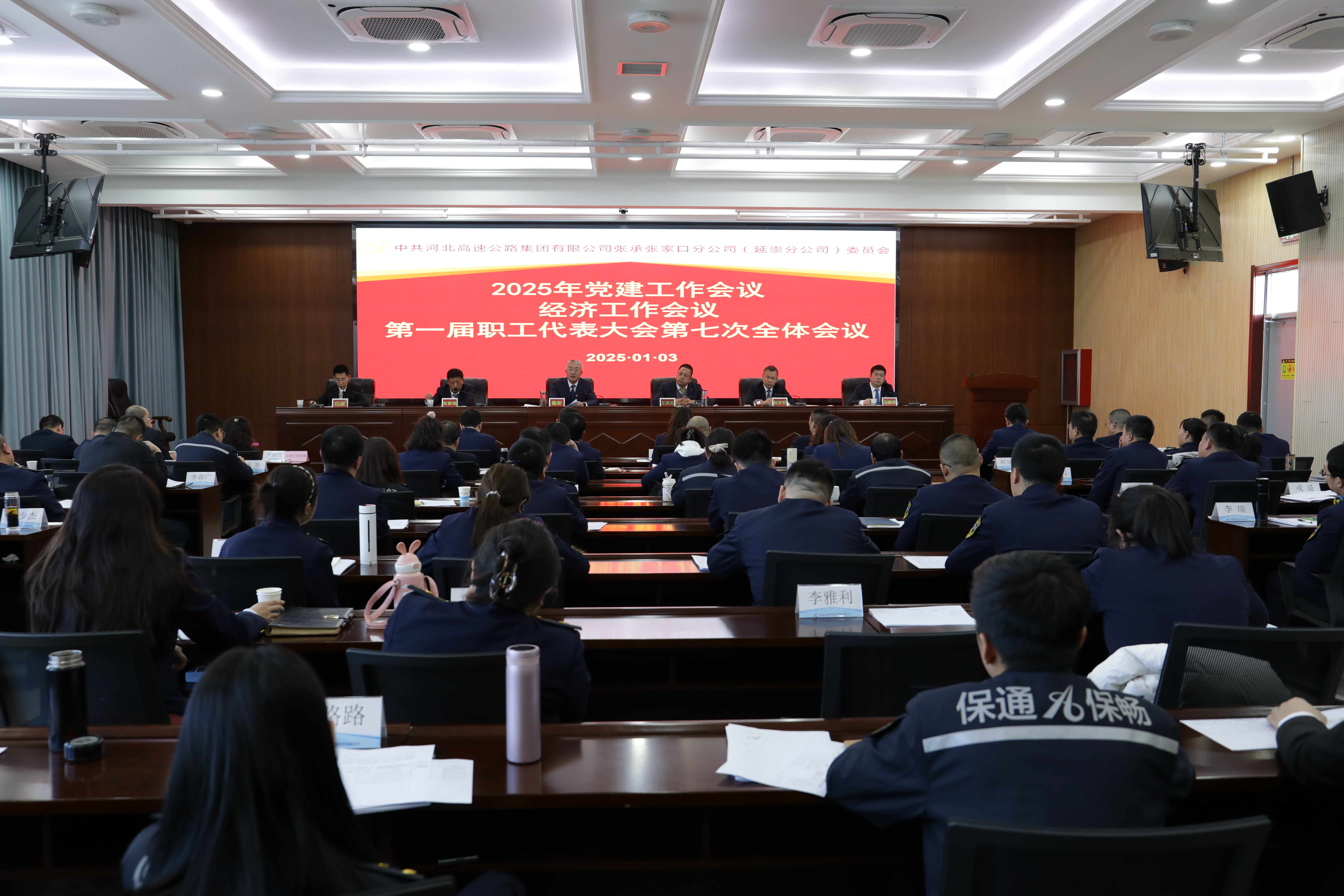 1月3日,张承张家口分公司(延崇分公司)召开2025年党建工作会议、经济工作会议、第一届职工代表大会第七次全体会议,分公司领导班子成员,第一届职工代表大会职工代表,各部室、各单位主要负责人共89人在主会场参加会议,各基层单位通过视频参会。