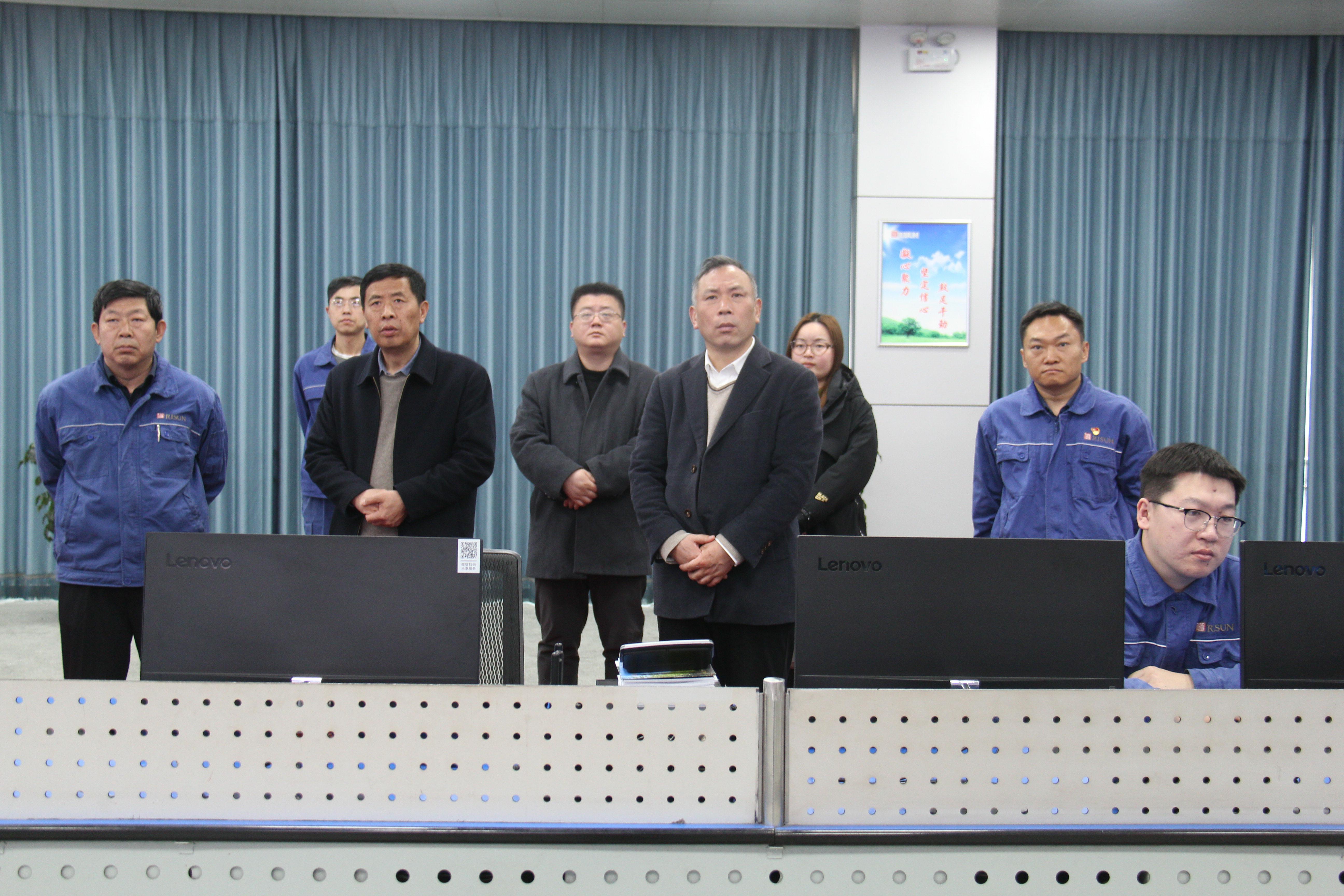 陈大学一行首先在园区展板前听取邢台园区及金牛旭阳基本情况介绍,随后重点在园区智慧能源中心、加氢站、金牛旭阳精馏、合成装置区及中控室参观。