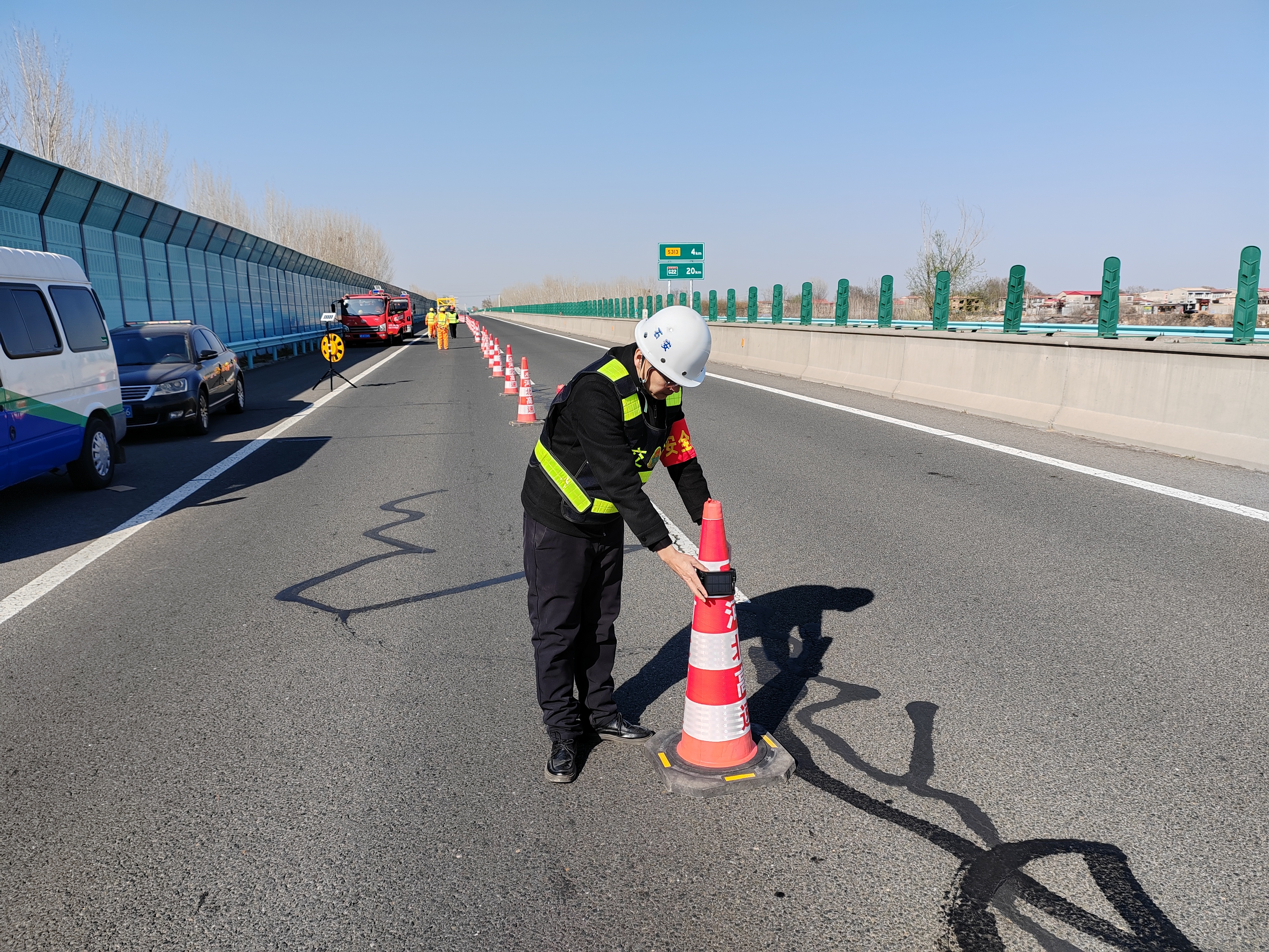 监管系统通过搭载太阳能供电系统的北斗卫星定位系统,实时采集、精准标定、远程监管高速公路养护施工控制区的位置与距离, 并持续预警施工信息。通过电脑PC端与手机APP远程监管平台,结合现有全程监控,各级管理人员可实时查看施工区域动态,实现全程数据追溯功能,成功构建起“前端感知-智能研判-即时响应”的安全防线。在石安分公司养护工程实践中,该平台展现出显著成效,石安分公司主线养护工程施工现场,标志牌、路锥整齐排列摆放精准、规范。