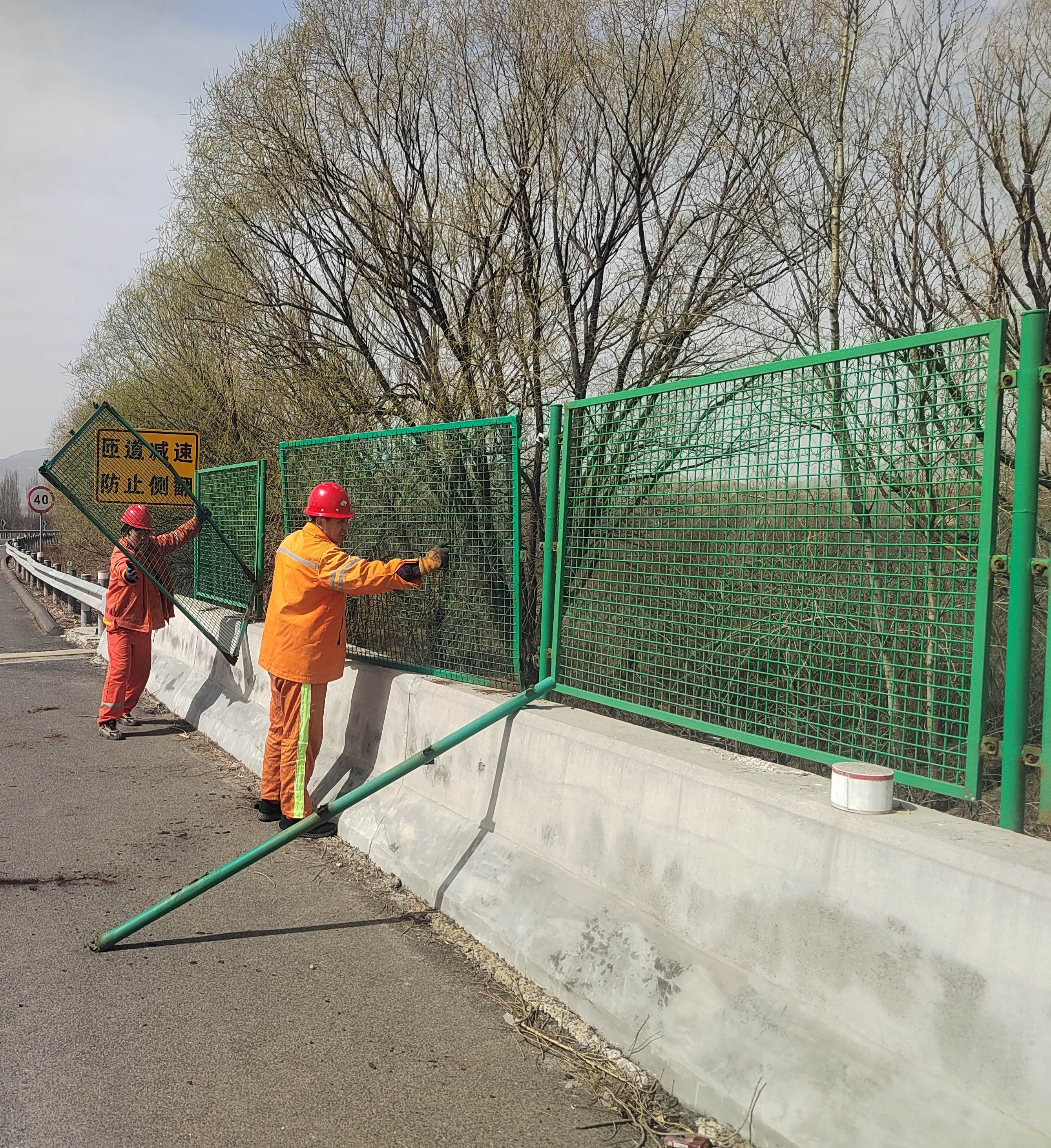 道路设施检查与维护。安排维修队员全面检查所管辖路段的隔离栅、标志标牌等,确保其牢固可靠,对松动、损坏的进行加固或拆卸;查看桥梁的伸缩缝、支座等部位,保证其处于良好状态,避免因大风引发结构安全问题;检查隔离栅、防护栏等设施,修复破损处,防止大风将其吹倒影响行车安全。