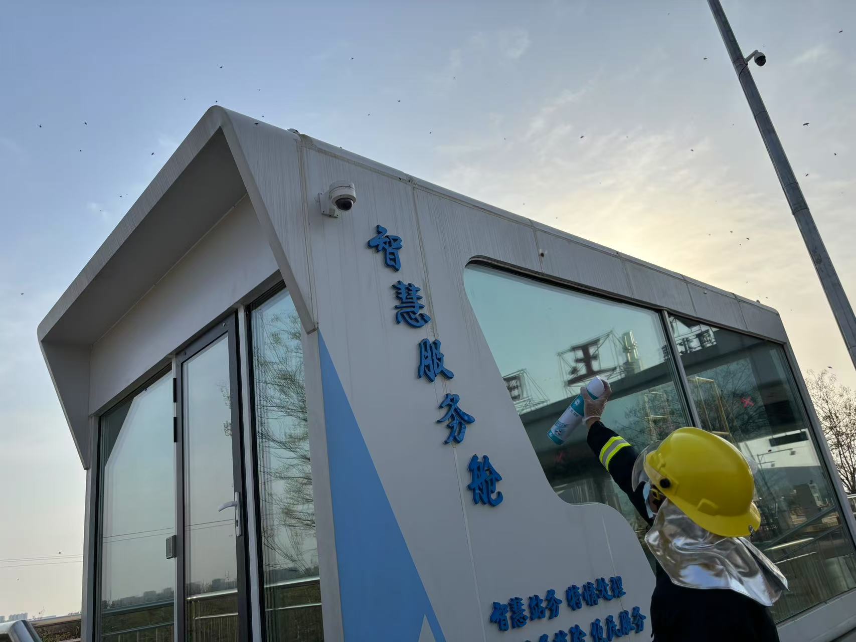 面对突发险情,玉田城北收费站立即启动应急预案,以高效协同的应急机制展开处置。疏导人员疏散周边车辆与行人,引导他们远离蜜蜂聚集区域,避免被蜇伤。站内后勤部门同步进入应急状态,接到当班班长物资需求后,仅3分钟便完成杀虫剂、防护用具等应急物资的调配与送达,为一线处置提供坚实保障。随后,工作人员穿戴好防护用具,手持杀虫剂对蜜蜂聚集区域进行喷洒作业。经过十几分钟的紧张作业,这场突如其来的“蜂暴”被成功平息,安全隐患顺利排除。