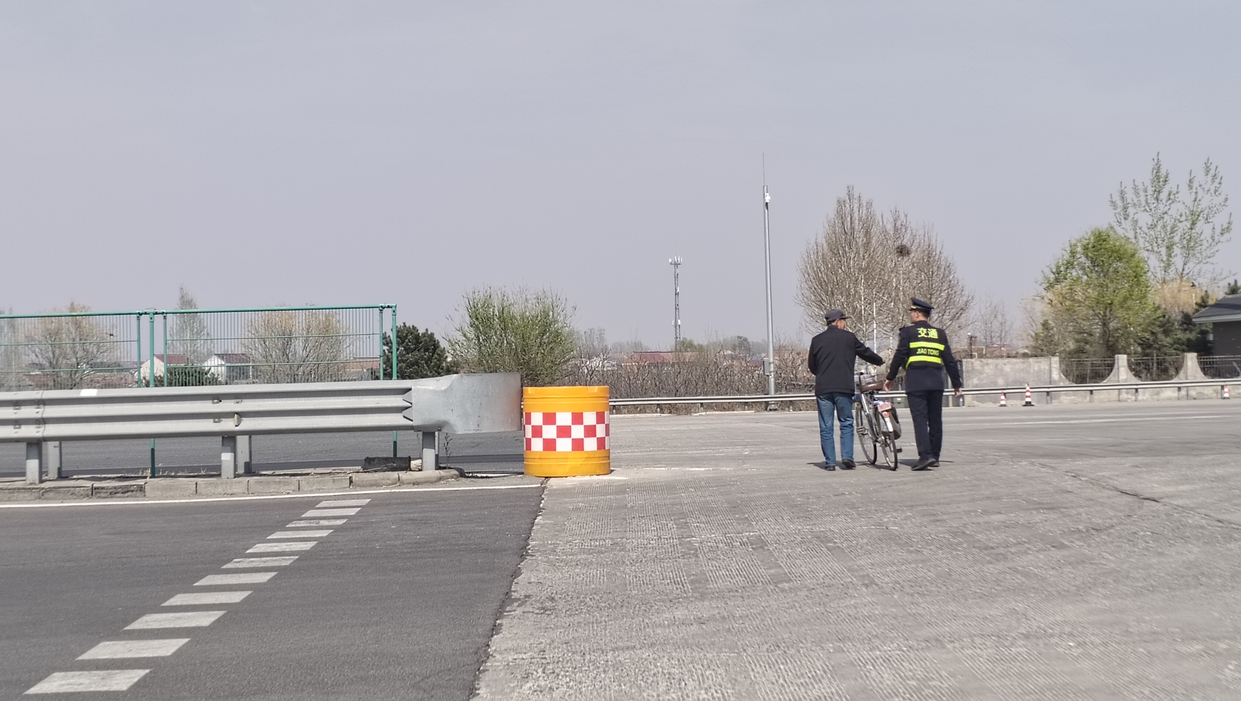 忽然,当班疏导员发现有一位推着老式自行车的老人满脸焦急的在入口称重车道附近徘徊。疏导员立即快步走上前,轻声询问道:“大爷,您是不是需要帮助?”老人一脸无助,声音颤抖地说:“小伙子,这不孩子们放假了,我想去小辛庄村看看外孙子,不知道咋着走这来了,一下懵了,不知道该往哪走了。”疏导员一边安抚老人情绪,一边慢慢为老人指引方向,说:“大爷,您顺着这条路一直往前走,第一个岔道口右转再直走就行了,您骑车一定注意安全啊。”老人听了不断道谢,激动地拉着疏导员的手说:“小伙子,麻烦你啦,谢谢,谢谢。”在疏导员再三叮嘱骑车安全的声音中,老人按照指引出发了。