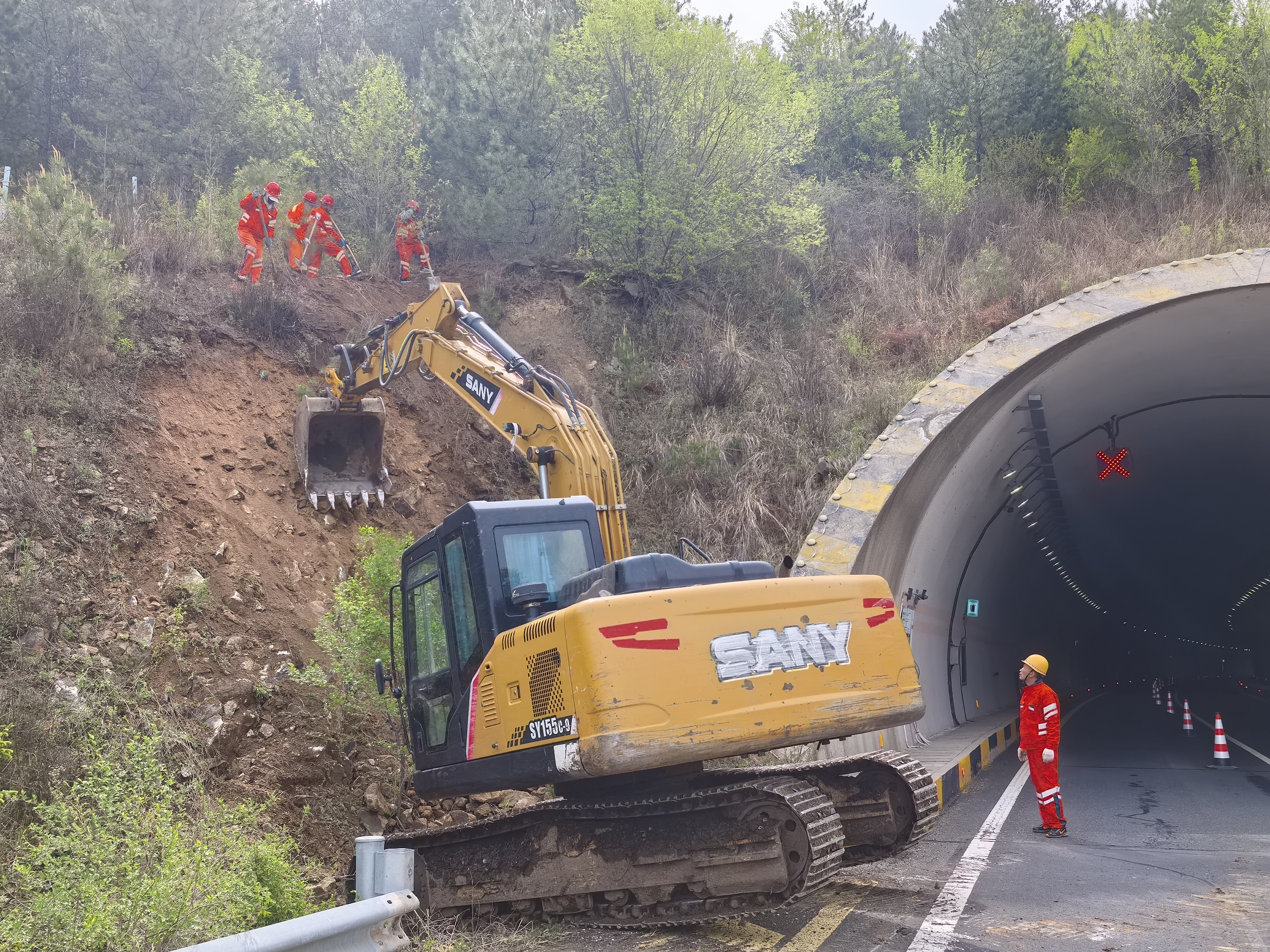 行动在安全布控下,以机械加人工的方式,对K42+680隧道洞口处浮石、K29+800处管涵淤泥、桥梁泄水孔、路面易积水位置、边坡边沟、排水沟等排水设施内的垃圾、杂草、石块、枯叶、淤泥进行彻底清理,确保排水设施恢复正常使用。