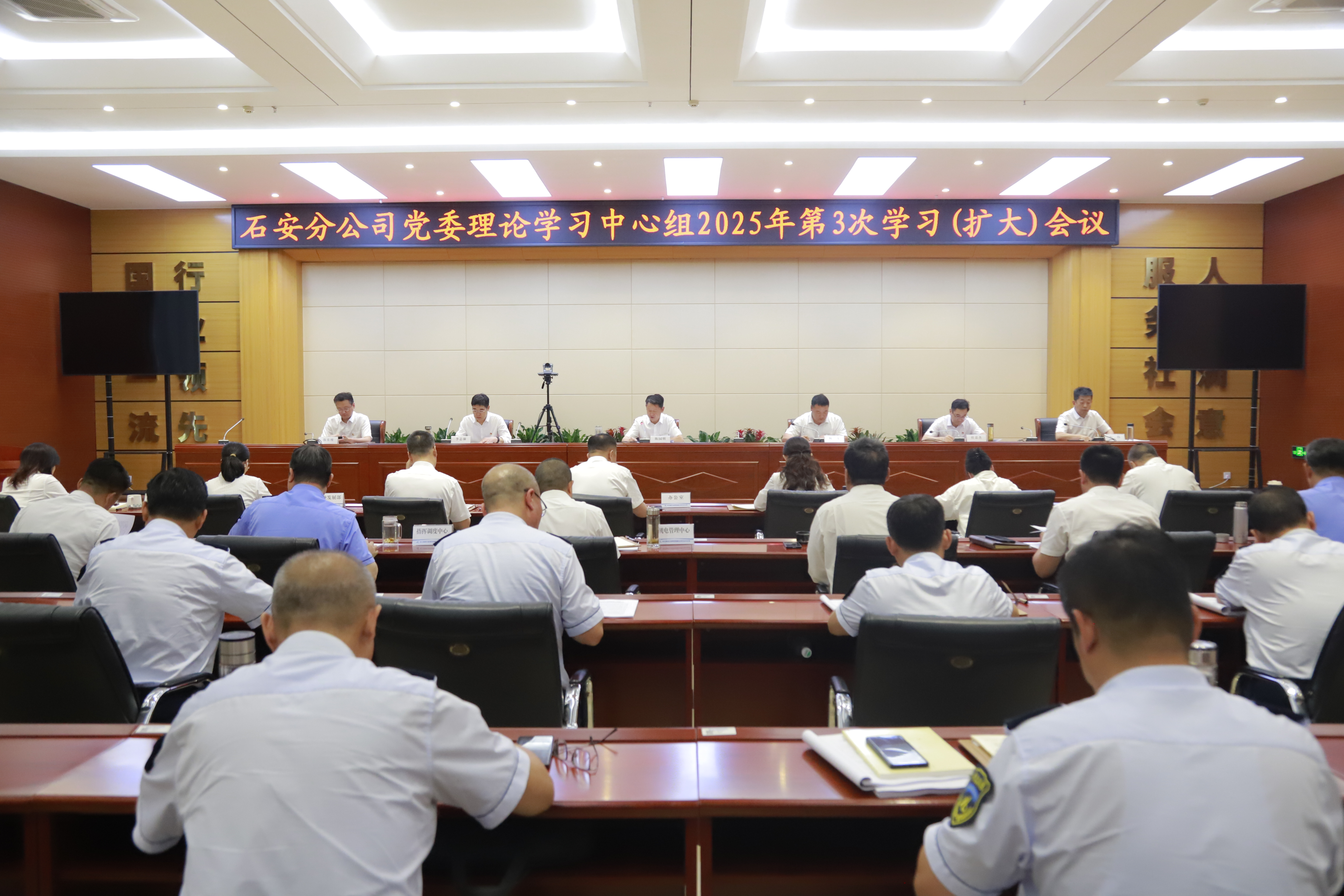 5月29日,石安分公司党委理论学习中心组2025年第3次学习(扩大)会议召开,深入学习贯彻习近平总书记关于加强党的作风建设的重要论述,加强沟通讨论,凝聚思想共识,坚决有力推动深入贯彻中央八项规定精神学习教育走深走实,以作风建设新成效助推分公司高质量发展迈出新步伐。分公司党委书记陈园明主持并讲话。