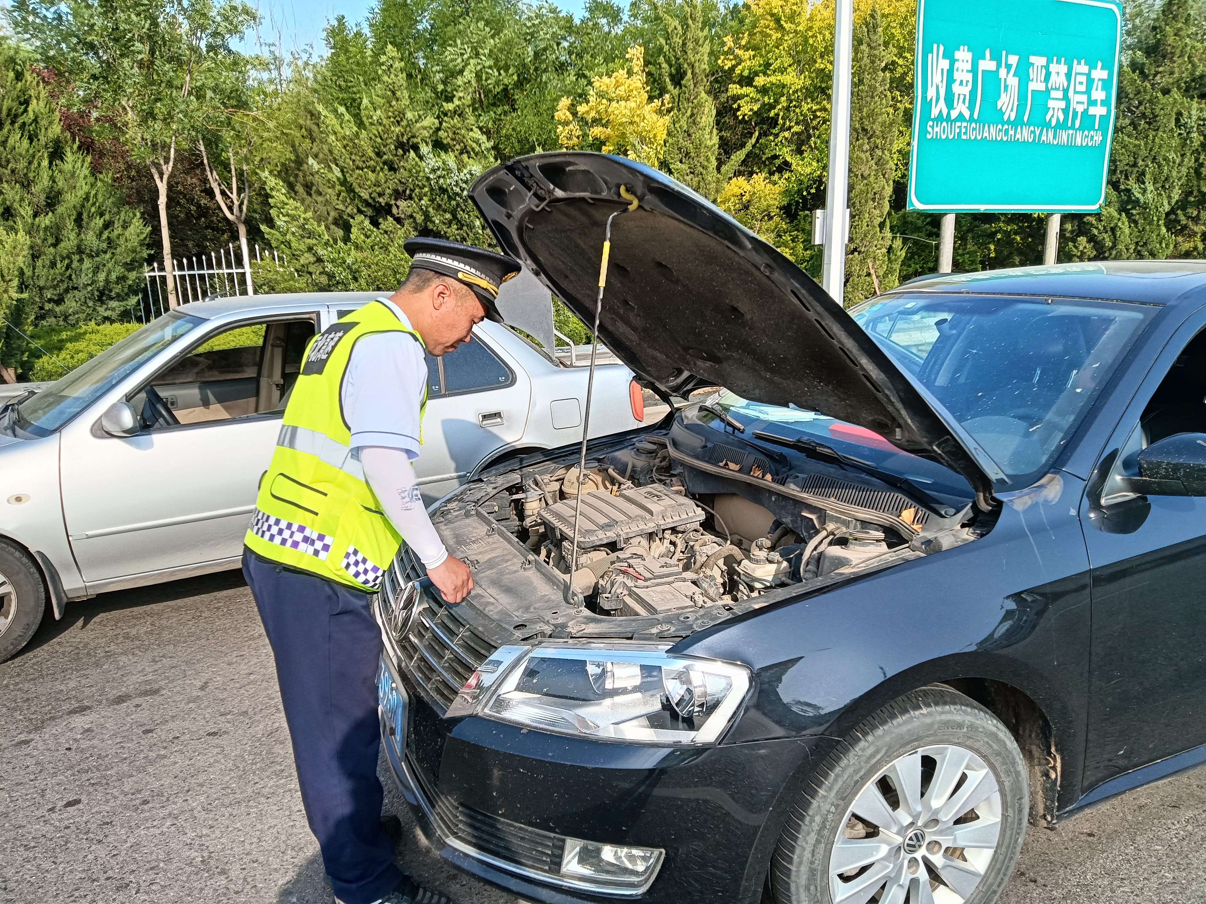 一辆小型客车开着双闪灯停在了内广场,当班班长解彦龙发现后立即上前查看。司机不清楚车辆故障原因,正急的团团转。解彦龙迅速喊来收费员张振,合力将车辆推至安全区域,并组织人员疏导交通,确保站口畅通。
