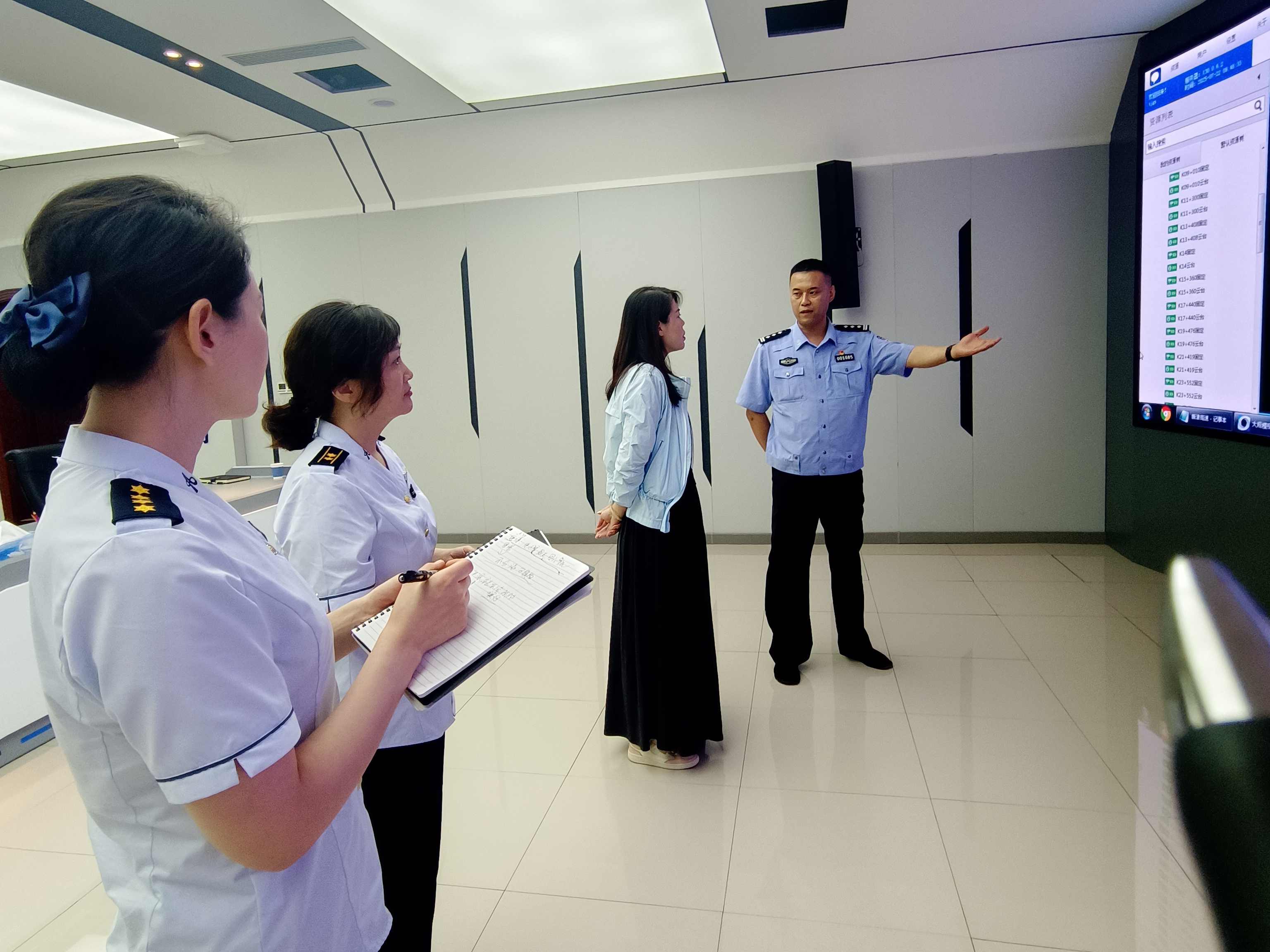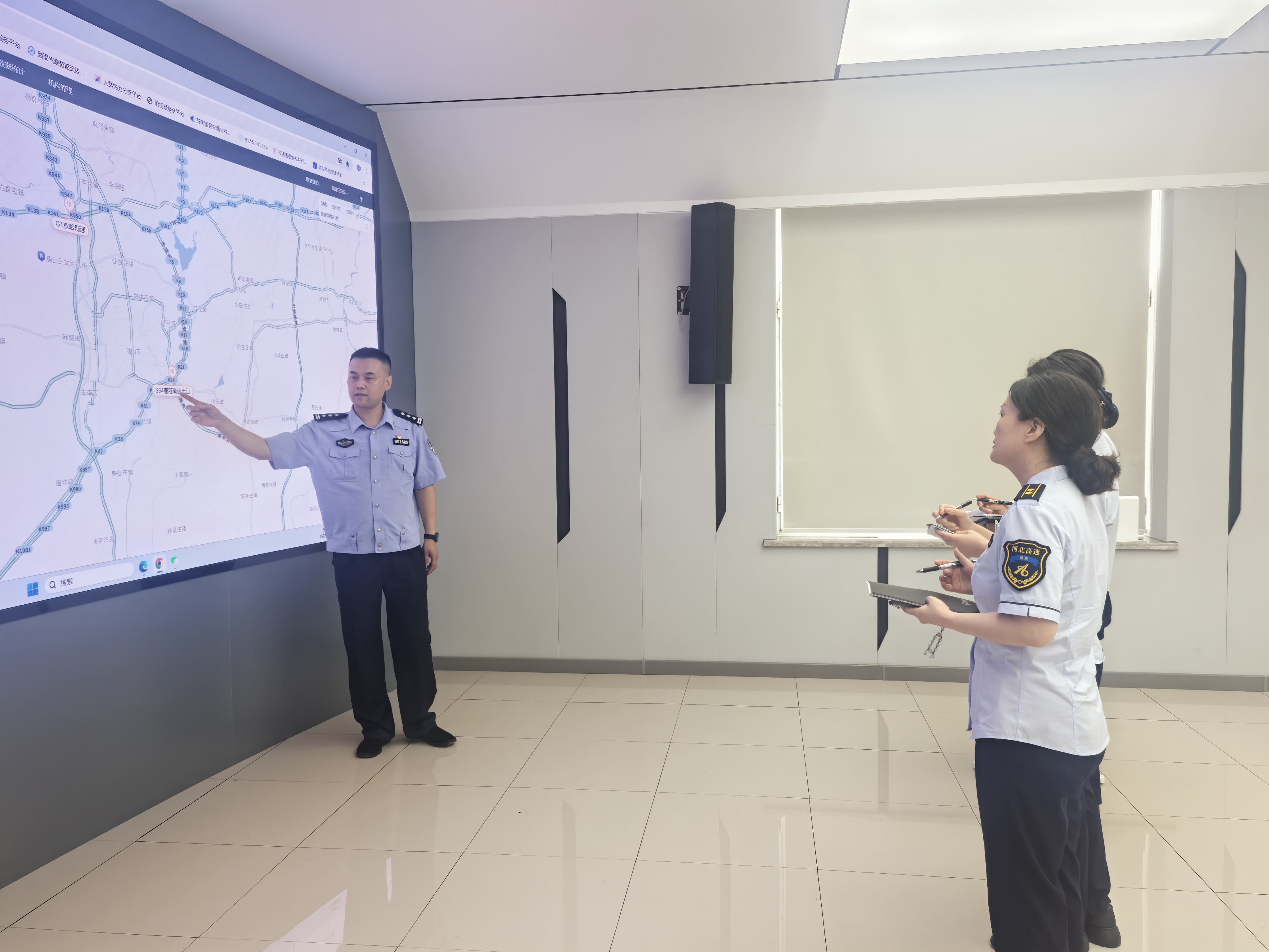 旅游高峰期期间,为了最大限度引流五轴及以上货车通行京哈高速,7月28日,指挥调度中心副经理赵庚若带领直播班组前往高速交警北戴河指挥调度中心,就辖区互通的动态管控展开深入交流。