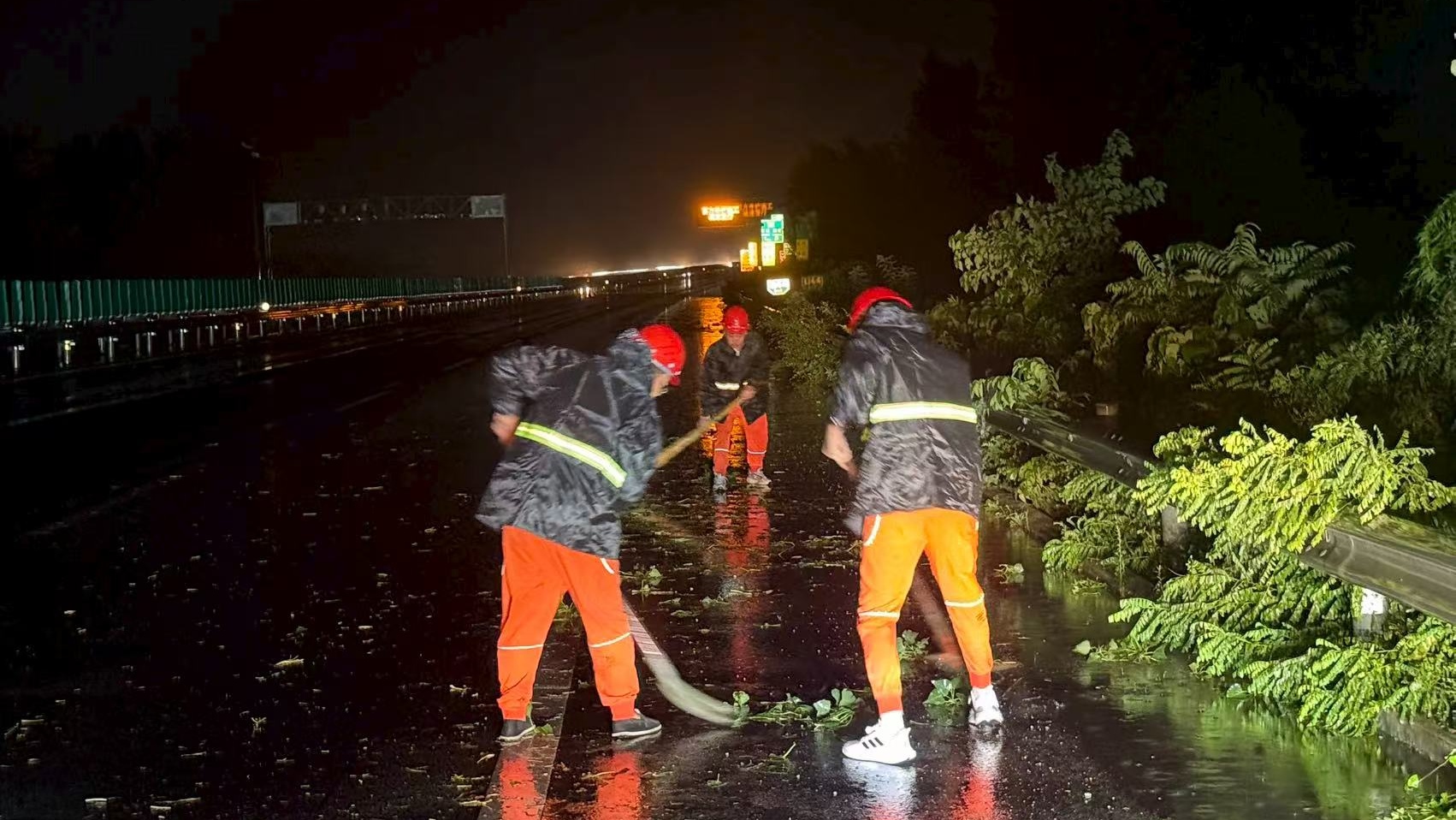 8月12日21时左右,衡水分中心牛驼养护队接到养护班组通知,受短时大风强降雨影响,衡水方向K1371+700、K1364处出现树木倒伏情况,倒伏的树木占据了行车道和应急车道,给行驶车辆带来极大的安全隐患。