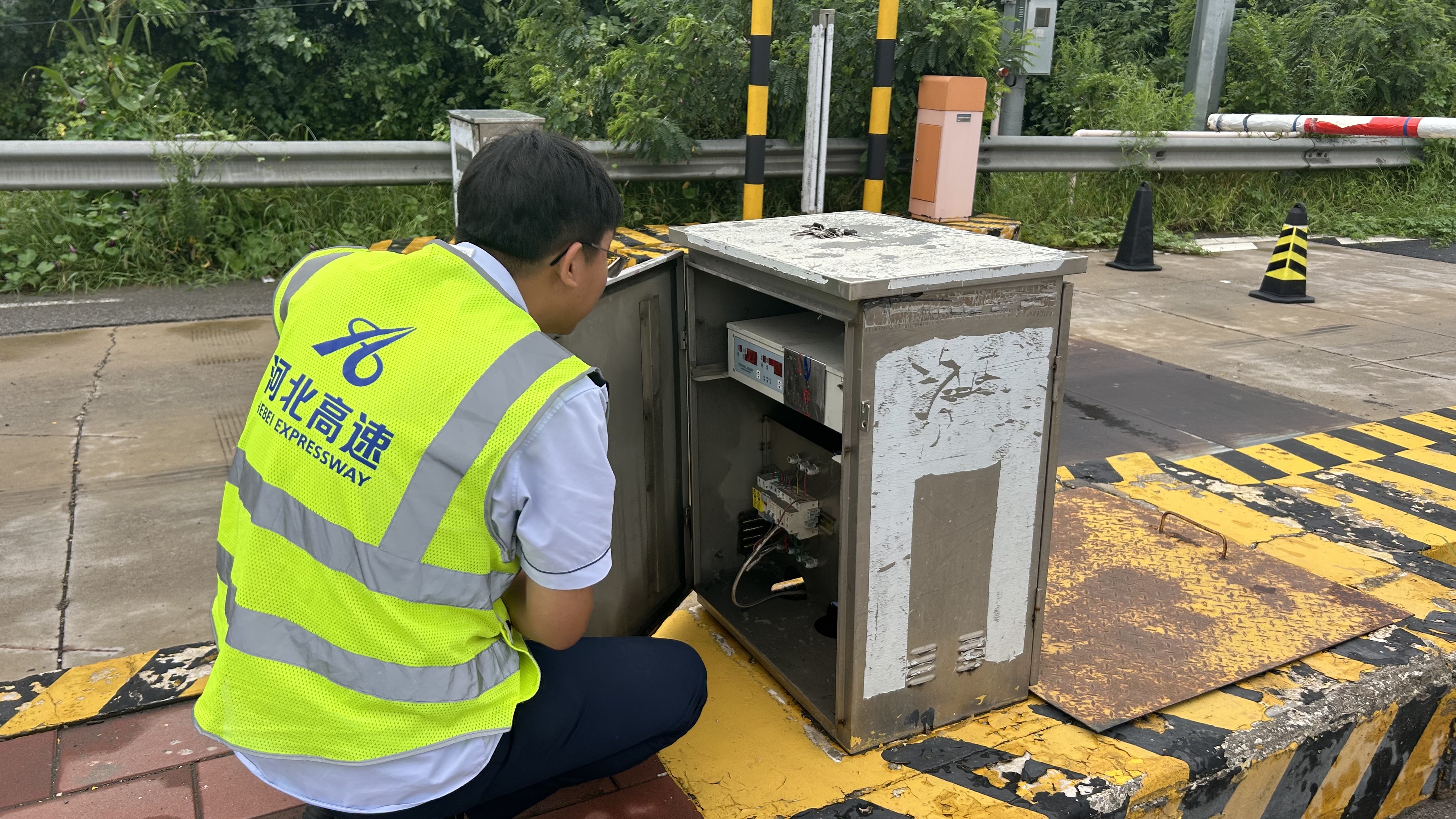 细查收费设备,保障通行高效。对收费站入口治超称重设备柜、车道摄像机防水罩、自动栏杆机及费额显示器等关键设备防水性能进行检查测试,确保设备正常运行,避免因渗水导致故障。同时,重点检查计重称台排水管道通畅情况,及时清理边沟杂物,避免因积水导致称重数据失真,为车辆快速通行提供坚实保障。