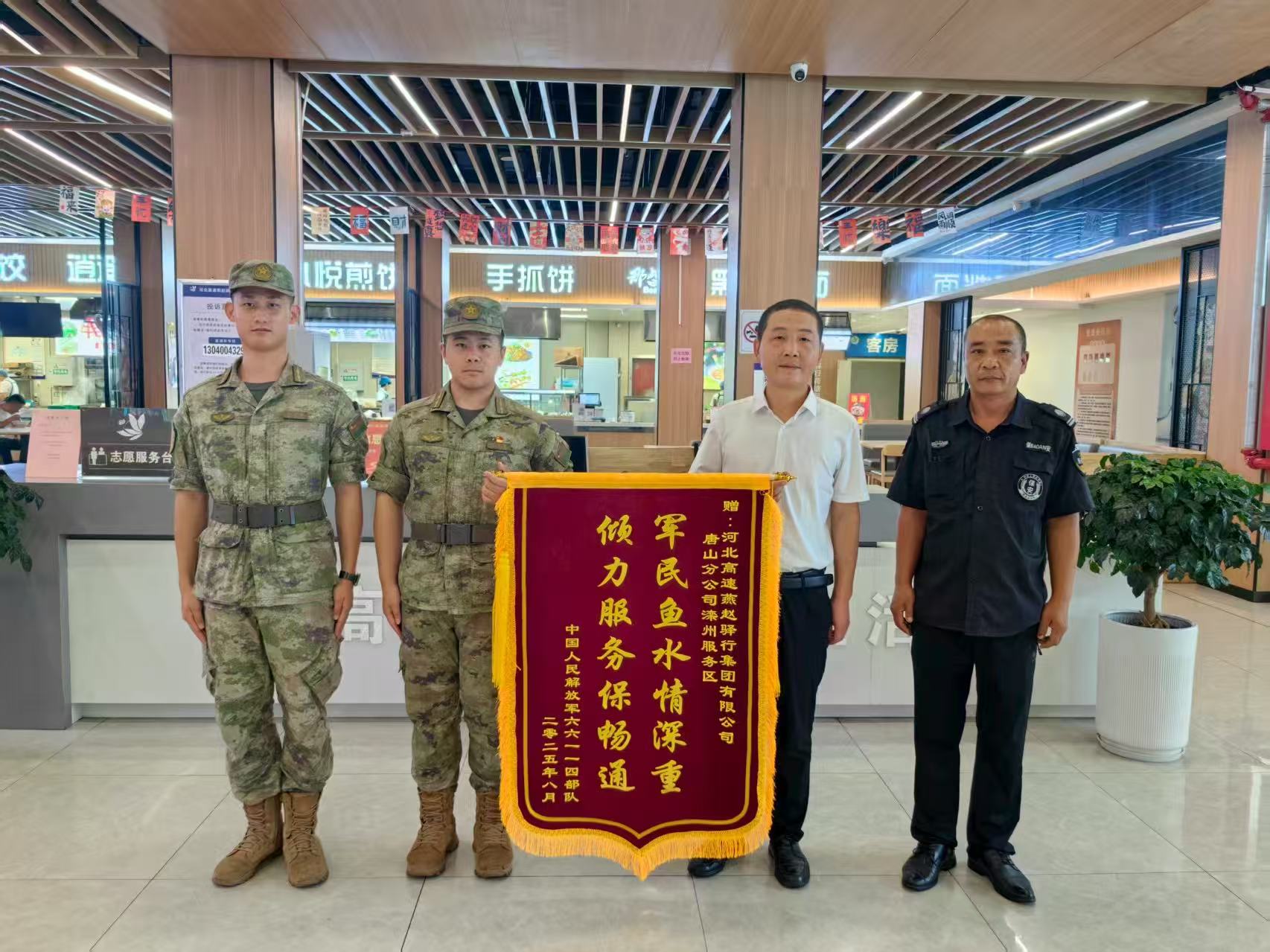 8月19日,燕赵驿行集团滦州服务区上演了温馨感人的一幕:某部队官兵将一面写有“军民鱼水情深重 倾力服务保畅通”的锦旗,郑重地送到服务区负责人手中,对服务区此前提供的周密保障和暖心服务表示高度赞扬和诚挚感谢。这面锦旗背后,是一个发生在高速公路上的动人双拥故事。