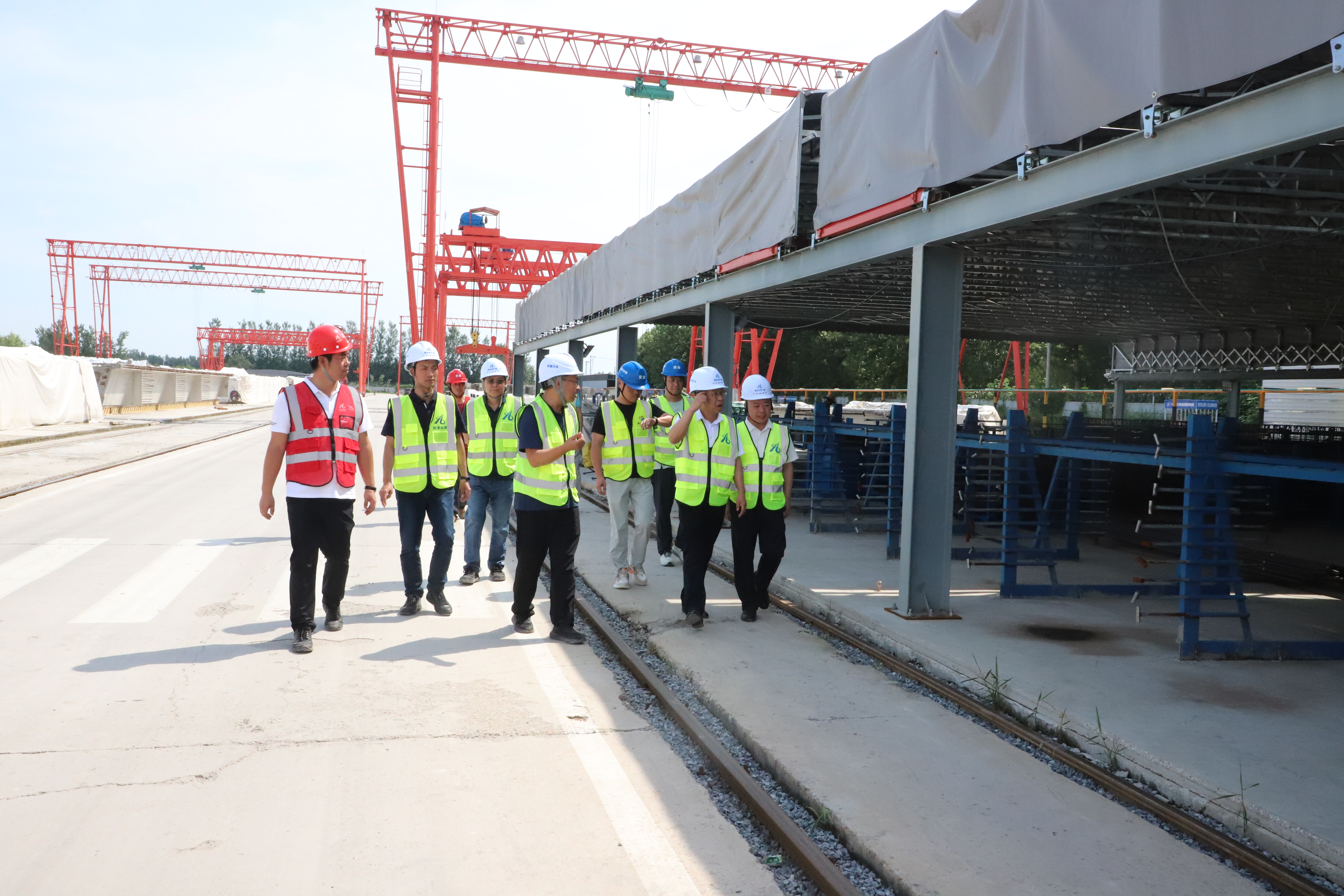 会前,集团领导一行深入施工一线,实地查看了沿线施工现场、预制梁场作业情况。在CFG桩与钻孔灌注桩施工现场,详细了解施工流程、机械设备运行和钢筋笼安装拼接情况;在预制梁场查看了钢筋绑扎、模板安装及梁板预制情况,全面掌握现场施工进展与安全管理现状。