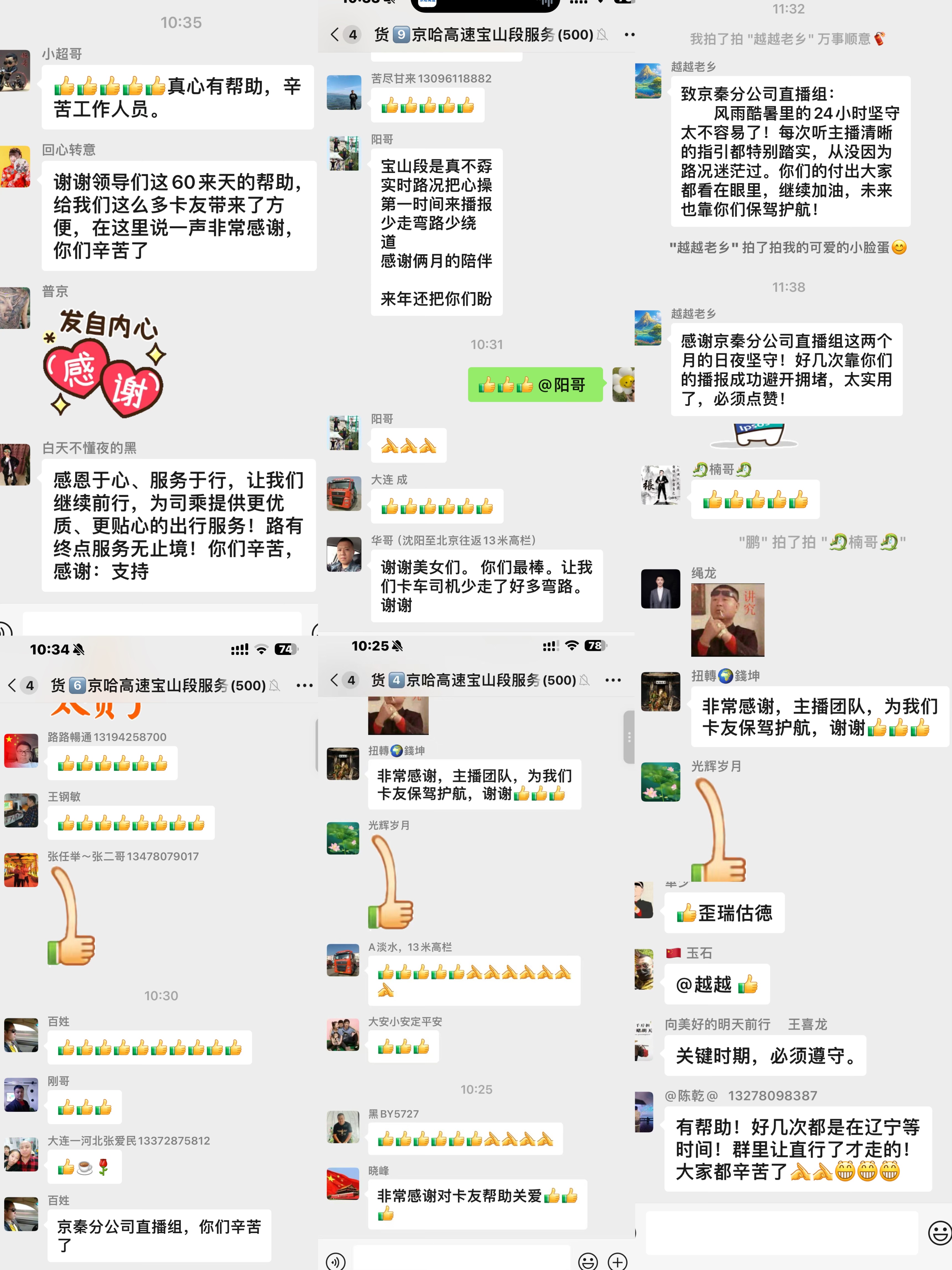 “每次跑京哈必看你们的直播,指路太准了!”“谢谢你们在群内全天守护着九游jiuyou(中国)卡友,真是贴心!”多位司机分享称:“按照直播提示改道,这一趟省了将近两小时!”“不只是省时间,更省心!” 在京哈高速宝山段直播间的粉丝群里,这样的点赞和感谢信息持续刷屏。
