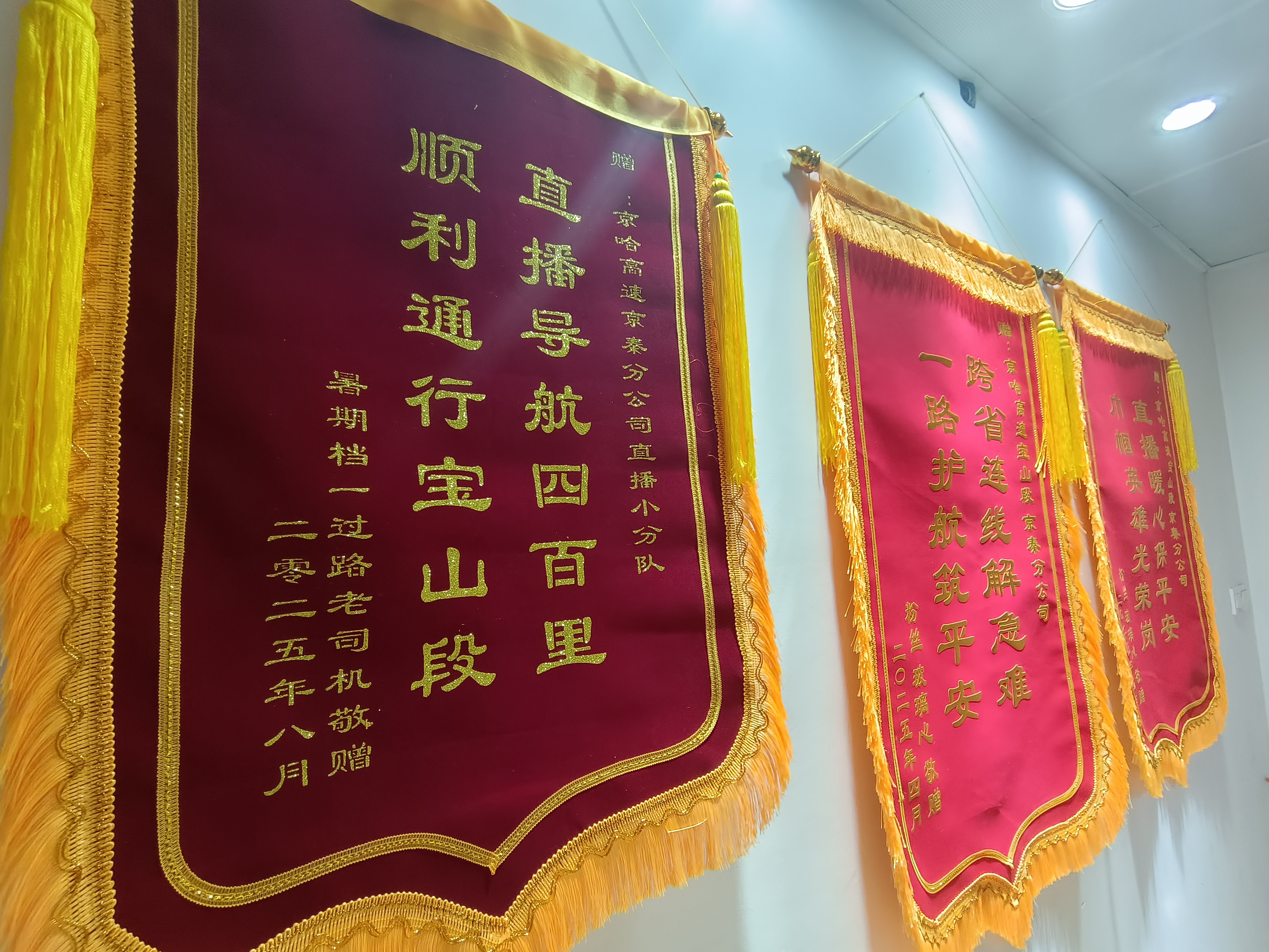 这段时间,直播班组凭借精准、实时、温暖的高速出行服务,成功圈粉无数货车司机,还有粉丝特意制作锦旗送至直播班组,感谢昼夜不间断地贴心守候。这些来自司乘的认可,不仅是对直播团队专业能力的称赞,更是对京秦分公司服务理念的高度认可。