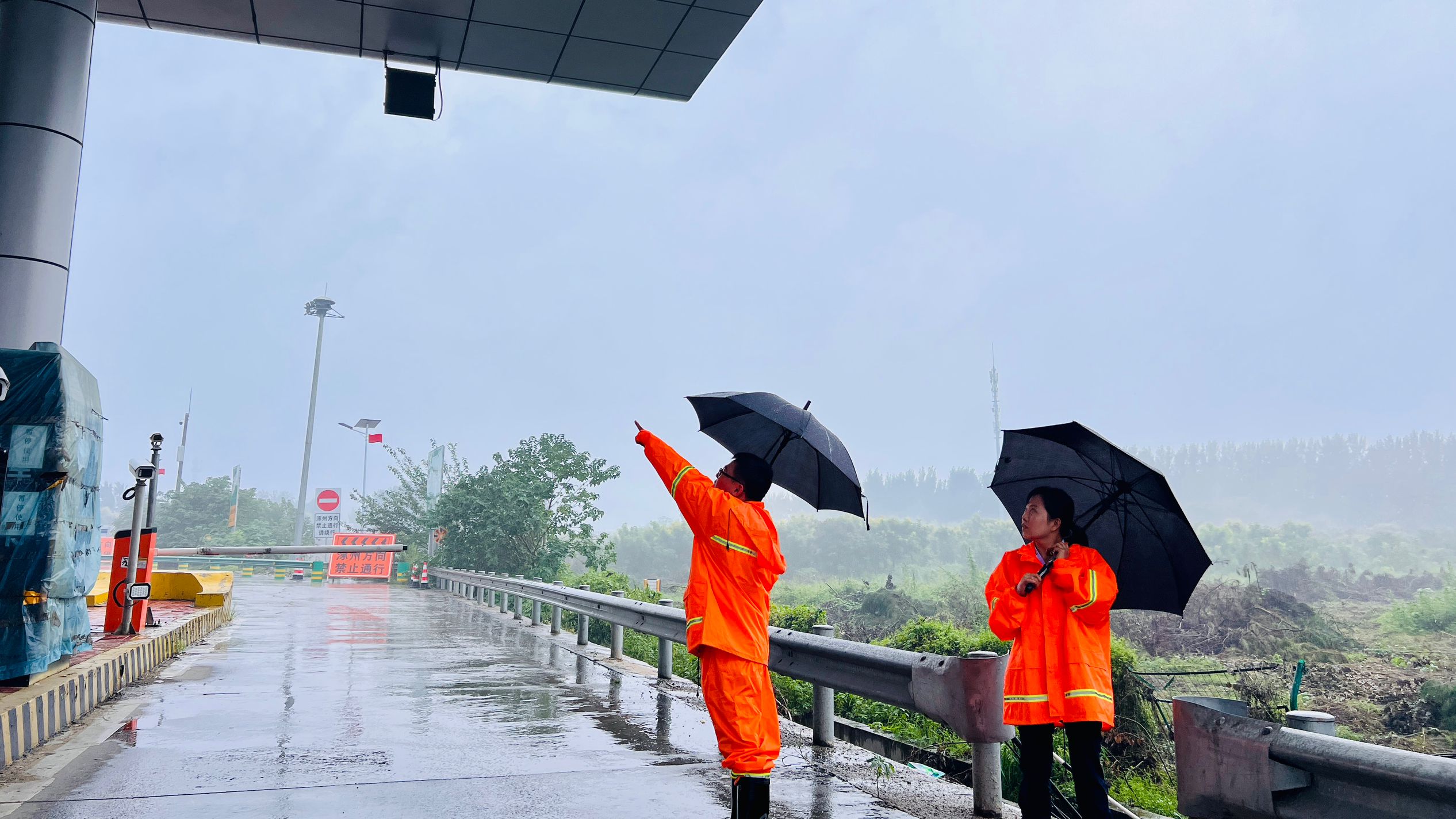 廊坊分公司东湾收费站:雨中巡护+闭环管控 织密“全链条”防汛安全网