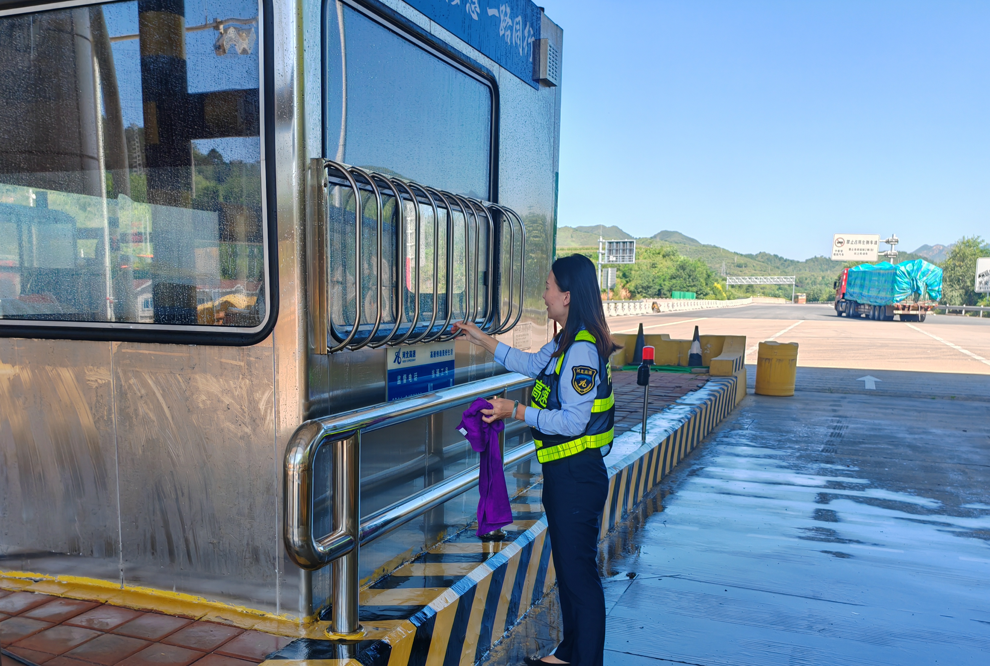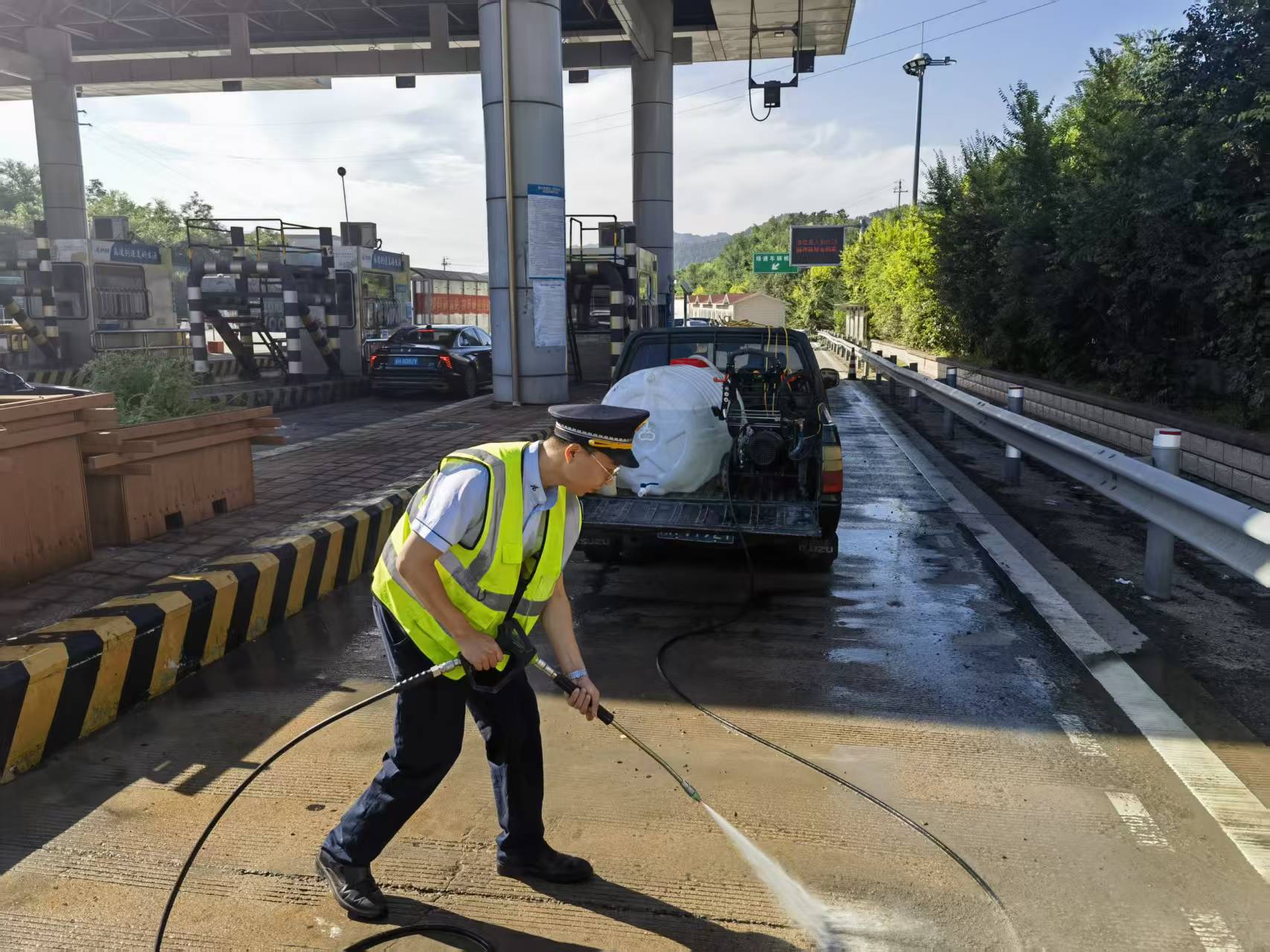 清理工作中,收费站明确重点清洁区域,聚焦司乘高频接触及视觉重点部位,形成“全域覆盖、重点攻坚”的清洁模式。一是推进核心区域深度清洁。以收费岗亭、车道、广场地面、岛头标线和排水沟为重点,采取“高压水枪冲洗+人工精细清扫+设备辅助刮擦”组合方式,对顽固油污、泥渍和缝隙杂物进行彻底清除。二是实施附属区域环境优化。同步养护站区绿化带,修剪枝条、清理杂草及白色垃圾;全面擦拭收费广场标识标牌,确保指引清晰;检修照明设施,更换损坏灯具,保障夜间照明,全面提升视觉整洁度。三是规范服务环境管理。在硬件清洁基础上,优化服务软环境:增设清晰导引标识,缓解车道拥堵;规范岗亭物品摆放,确保整齐美观;加强日常巡查,实现环境问题即时处理;开展收费人员文明服务培训,强化礼仪规范、沟通与应急处置能力,致力为司乘提供“眼观舒适、心感温暖”的通行体验。