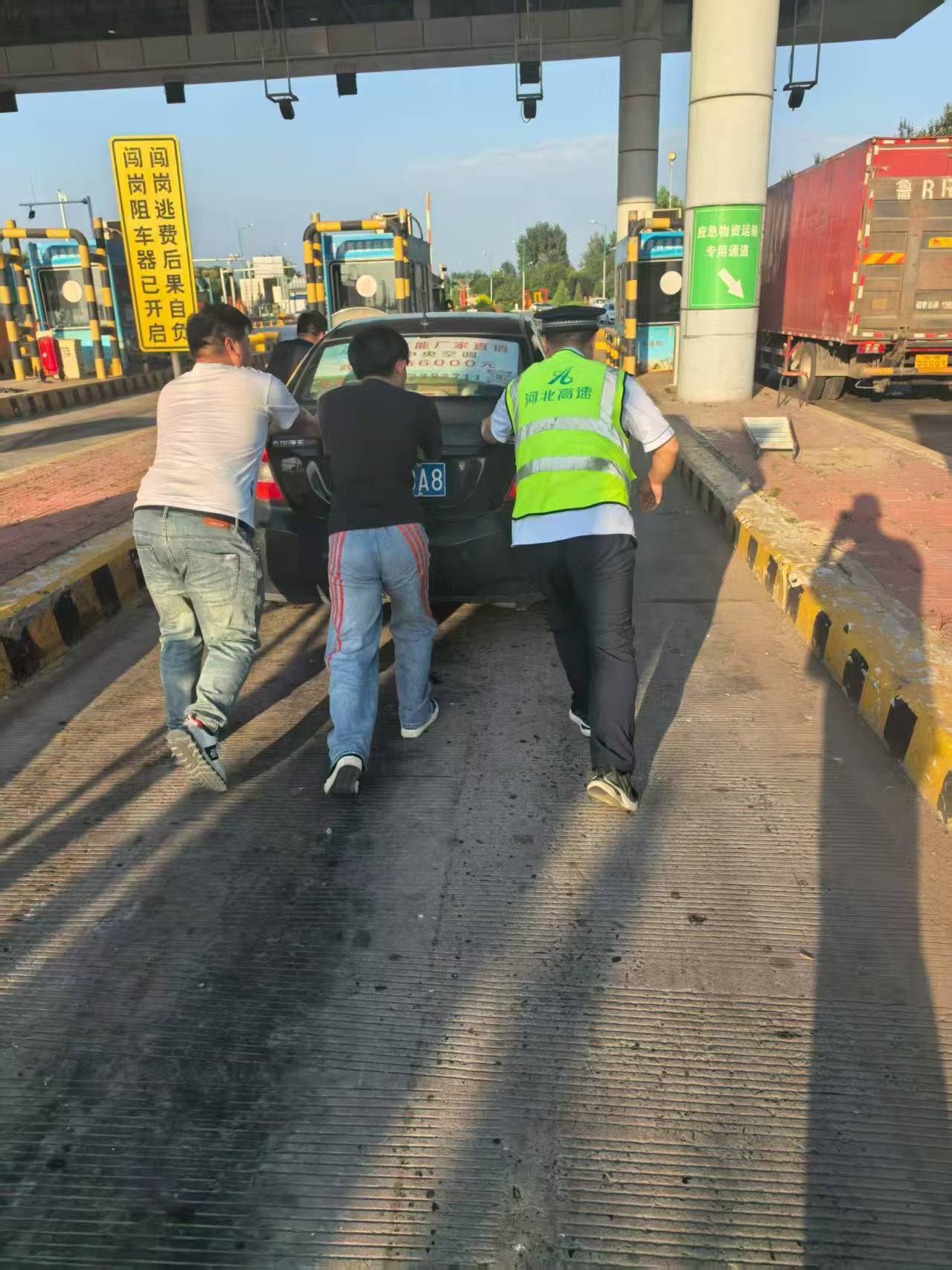 9月3日17时许,一辆小轿车行驶至肃宁收费站出口时突发故障,熄火滞留在车道内。当班工作人员发现后,立即上前核查,确认该车辆已无法启动。