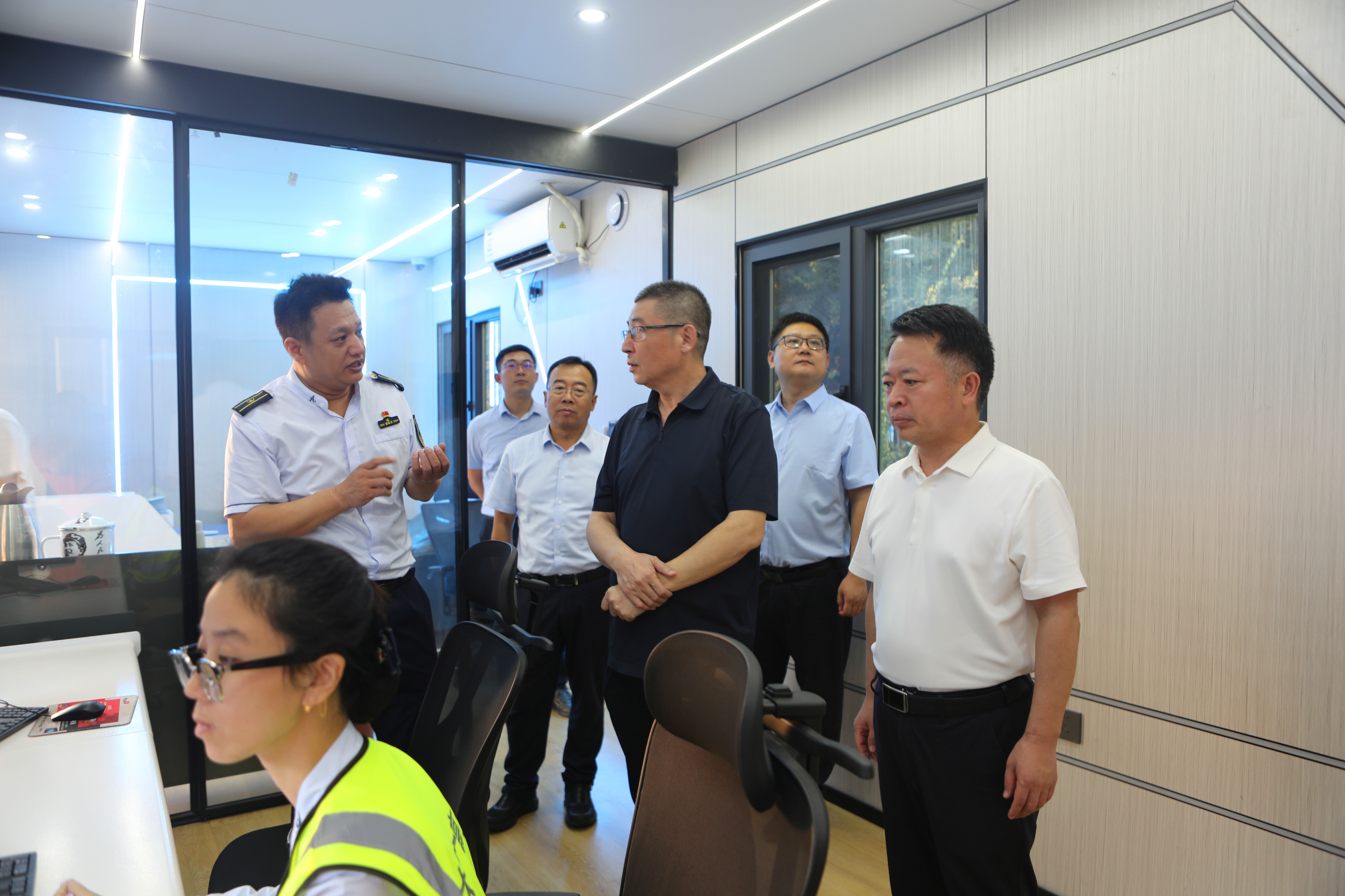 在白洋淀收费站,督导组来到收费广场和智慧云仓,对智慧化改造后机电设备运行、少人化值守现状、站口特情处置、