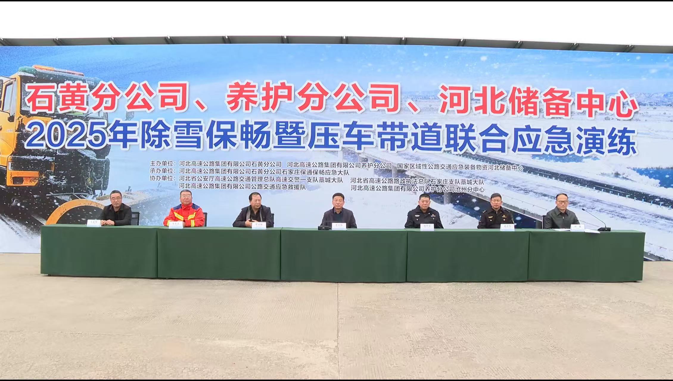 为更好检验“一路多方、协调联动”冬季除雪保畅工作机制,完成今冬明春除雪保畅工作。2025年11月5日上午,养护分公司联合石黄分公司,于藁城养护队驻地,举办“2025年除雪保畅暨压车带道联合应急演练”,河北高速集团有限公司石黄分公司党委书记翟忠伟,国家区域性公路交通应急装备物资河北储备中心主任梁文斌,九游官方网站公路交通应急救援队队长朱宏文,养护分公司副总经理左志国,石黄分公司副总经理孙越,河北省公安厅高速公路交通管理总队高速交警一支队藁城大队队长赵双虎,河北省高速公路路政执法总队石家庄支队藁城大队队长赵宏伟,出席此次演练。