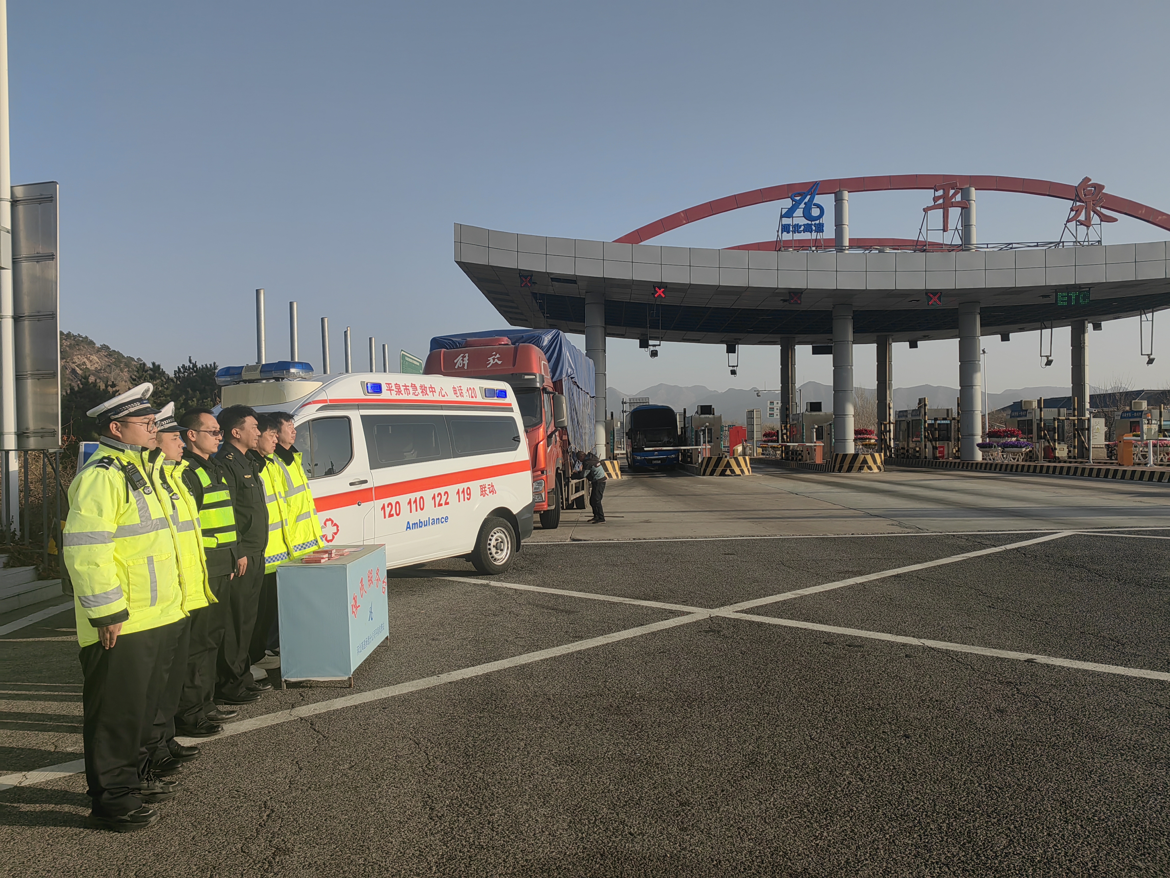 为全面提升高速公路突发事件救援效率,保障司乘人员生命财产安全与道路安全畅通,11月23日,承德分公司平泉保通保畅应急大队创新工作模式,主动联合高速交警、路政部门,在平泉收费站广场成功举办了一场以“一路三方 一键可达”为主题的“一键救援”联合宣传活动。此举旨在通过多方协作,将便捷、高效的救援服务理念精准传递至每一位出行者。