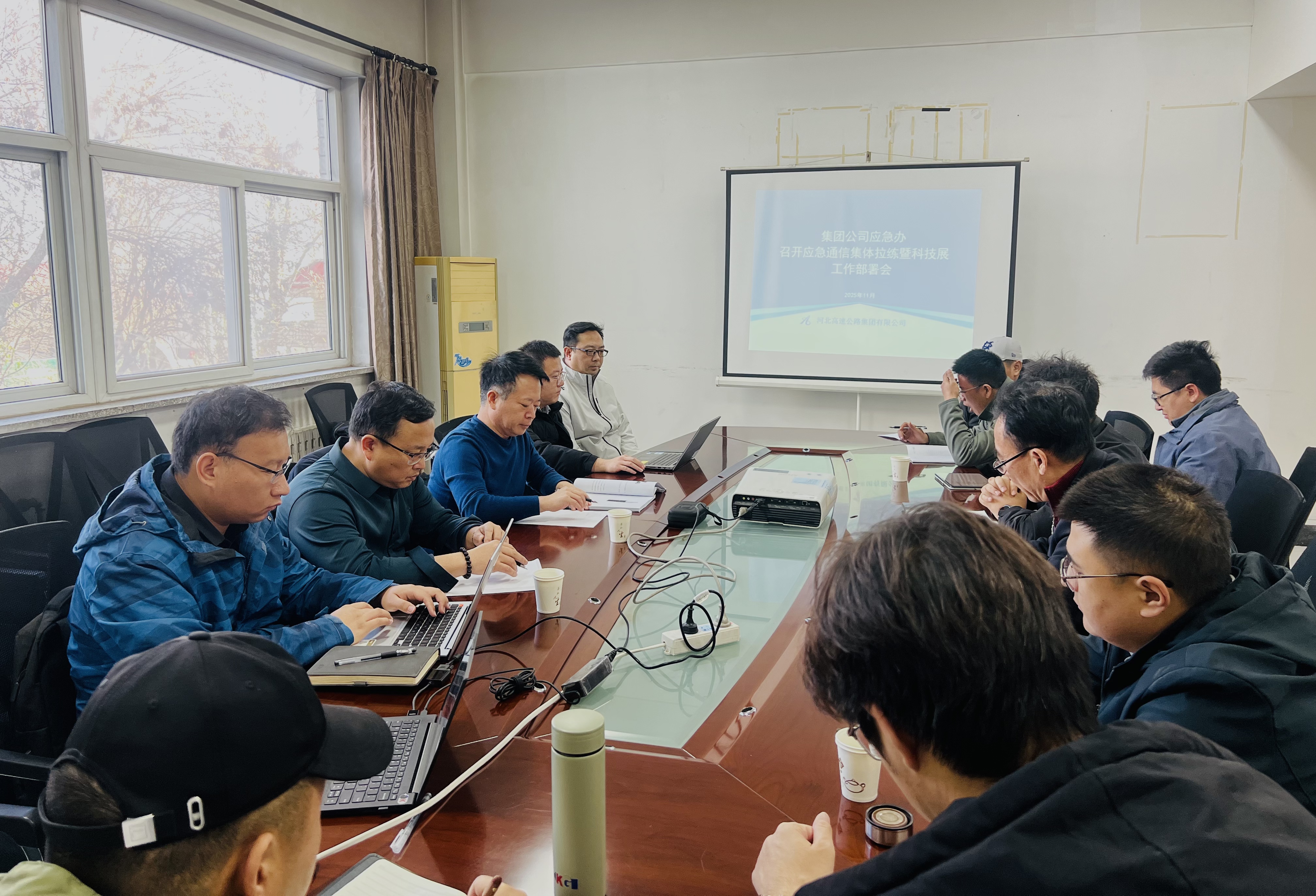 2025年11月27日,为深入贯彻习近平总书记关于防灾减灾救灾的重要指示批示精神,认真落实省委省政府、省国资委、省交通运输厅对应急保障工作的部署,结合《进一步提升基层应急管理能力的实施意见》有关要求,全面提升集团公司应急通信保障队伍综合实力,集团公司应急办在藁城养护队组织召开应急通信集体拉练暨科技展工作部署会。集团公司安全环保部部长甄伟超,交通运输部通信信息中心科技交通主任叶晖、刘国光,承德、张涿、邢汾和养护分公司应急通信负责人及指挥员,冀翔通公司、远东通信公司负责人及有关技术人员参加会议。