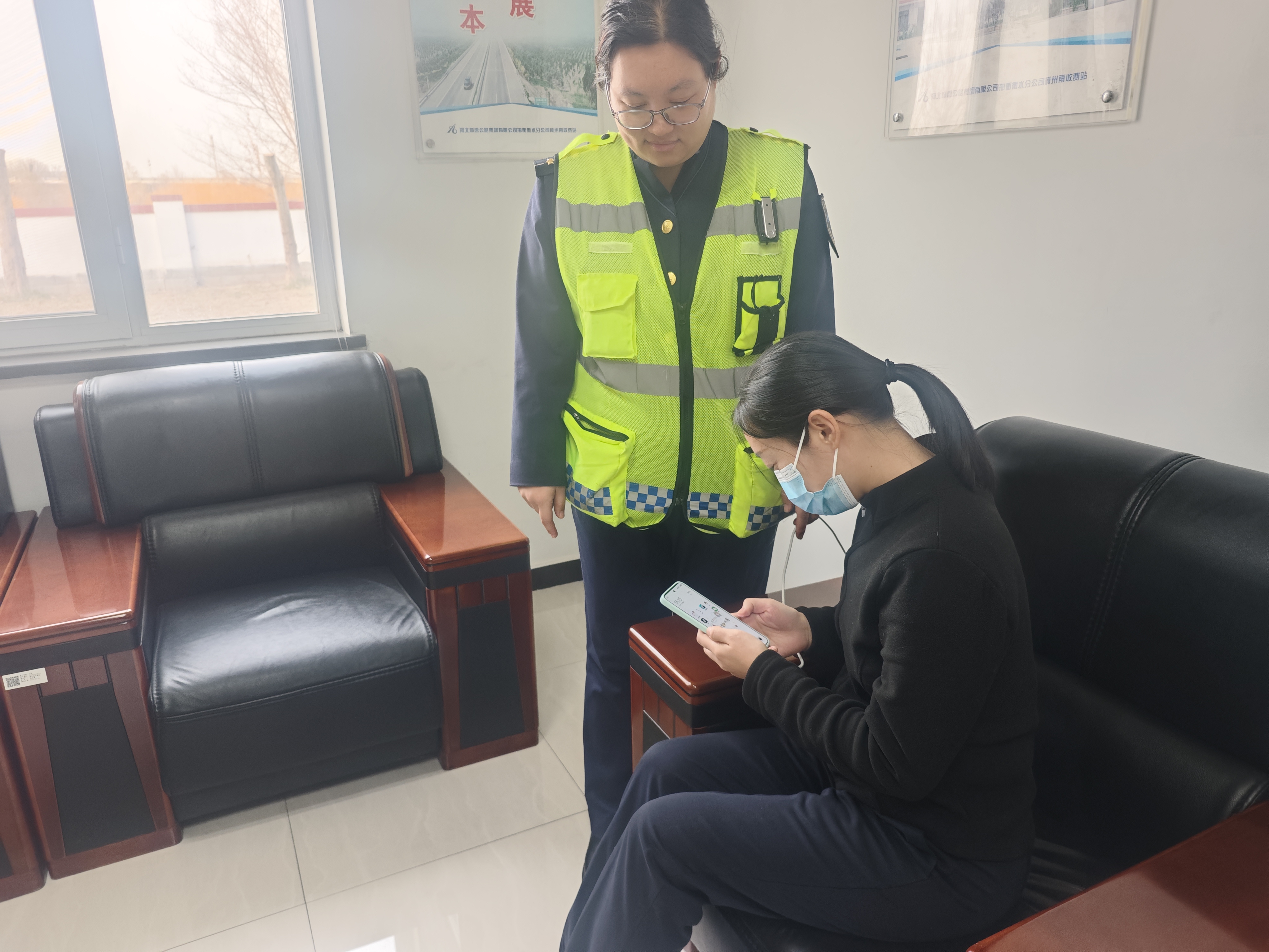 12月1日,一辆小型客车缓缓驶出冀州南收费站收费车道后,司机王女士焦急地向当班收费员挥手求助,称手机电量耗尽已自动关机,无法使用导航前往亲戚家,一时不知如何是好。