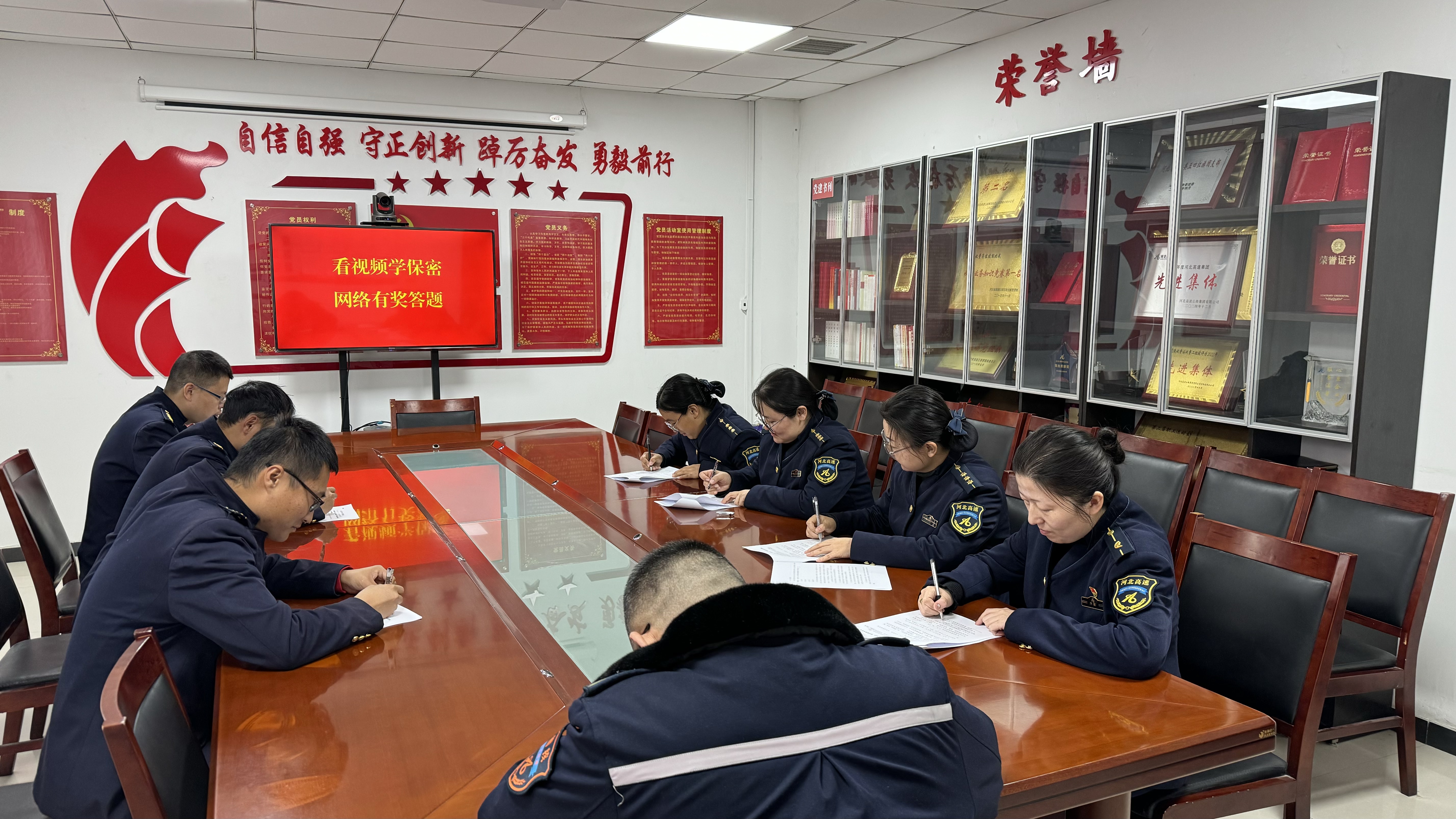 为进一步强化职工保密意识,提升定密工作专业能力,近日,清东陵收费站积极组织开展了保密知识学习系列活动,通过“线上答题+线下笔答”双轨并行的方式,将保密教育从“理论灌输”转化为“实践检验”,切实筑牢站区信息安全屏障。