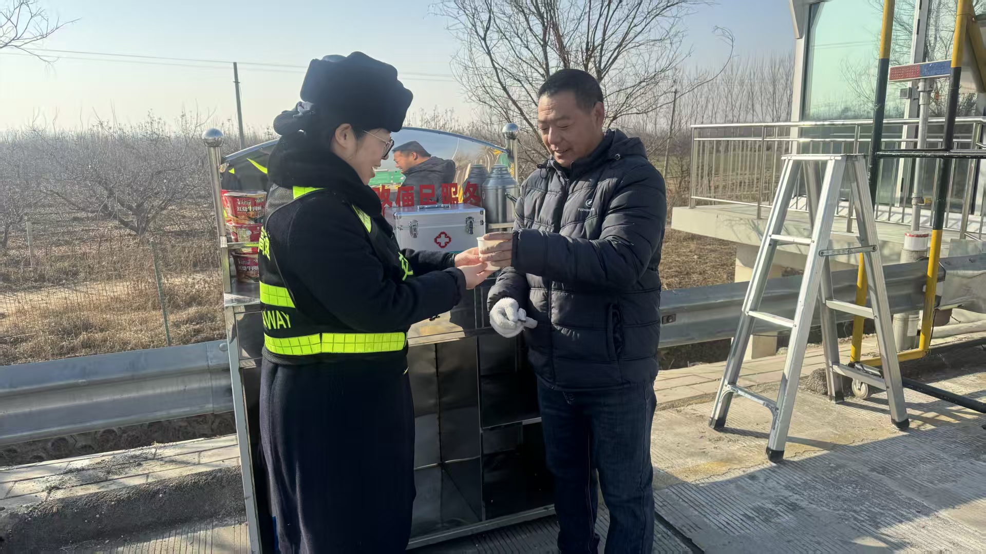 玉田城北收费站针对冬季低温天气特点,将暖心服务落到实处,让司乘在寒风中感受温暖。12月17日清晨,寒气袭人,一名乘客在收费站外广场来回踱步取暖,正在值岗的工作人员见状,立即从便民服务台取来热水递上,让乘客暖身又暖心。进入12月以来,该站在便民服务台24小时备足热水和一次性纸杯,重点关注等车乘客、货车司机等群体,累计提供热水服务60余人次,同时配备暖手宝、手机充电、应急药品等10余项便民设施,让“临时停靠”变身“温馨驿站”。站内职工用帮老人提行李、为司机指路等平凡举动,串联起高速路上的“温暖长廊”。