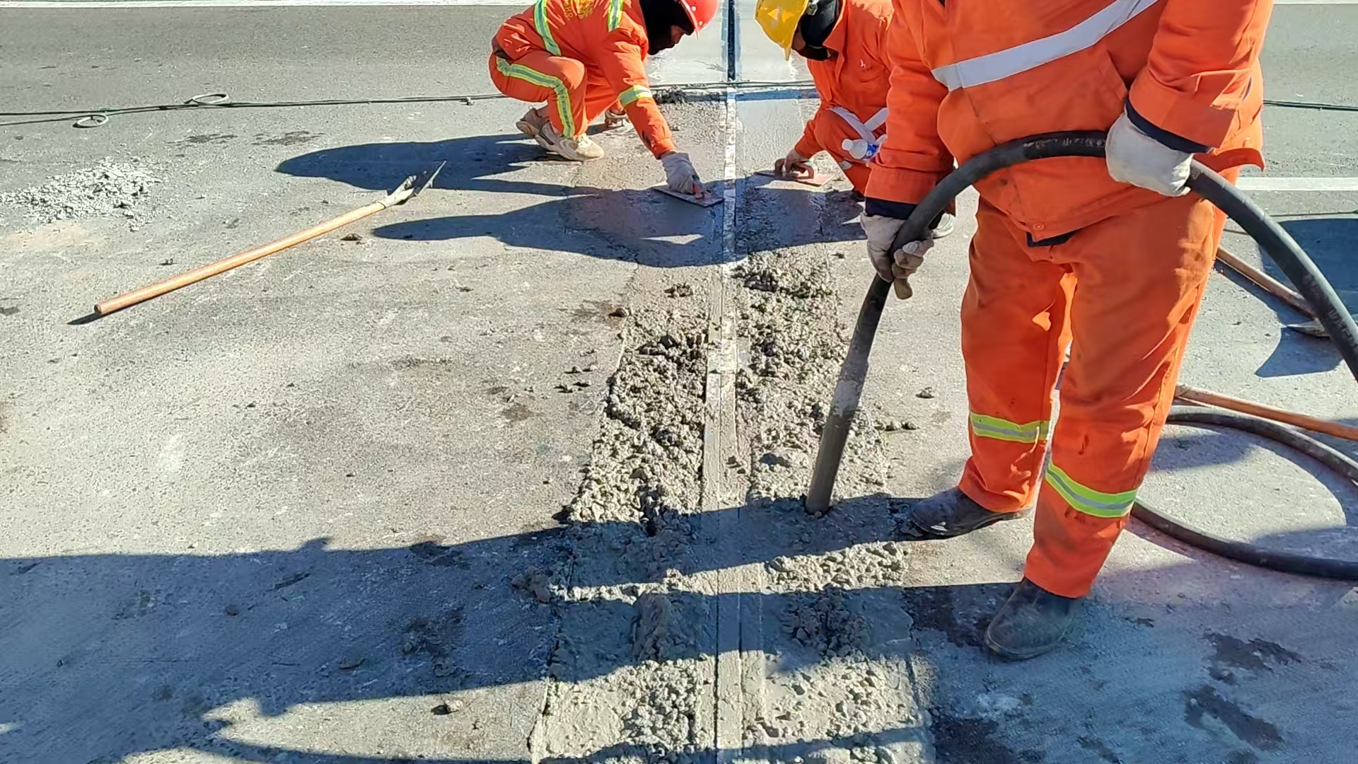 截至11时55分,伸缩缝更换工作全部完成。养护队随即有序撤离交安设施,清理作业现场,道路恢复正常通行。