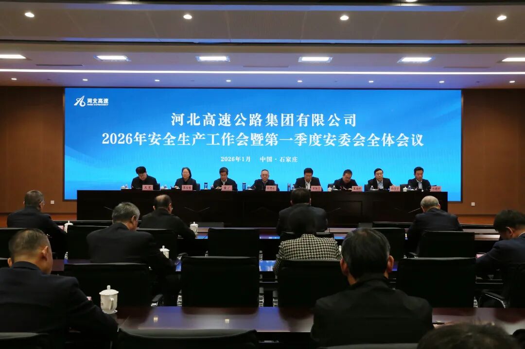 1月12日,河北高速集团召开2026年安全生产工作会暨第一季度安委会全体会议,深入学习贯彻习近平总书记关于安全生产的重要指示精神,认真落实省委、省政府,交通运输部决策部署和省国资委、省交通运输厅工作安排,总结2025年安全生产工作,分析研判形势,部署2026年重点任务。集团公司党委书记、董事长张建公出席会议并讲话,党委副书记、副董事长、总经理宣国宝主持会议。党委副书记、董事、工会主席董广传达了上级会议精神,副总经理于建游作了集团公司2026年安全生产工作报告。