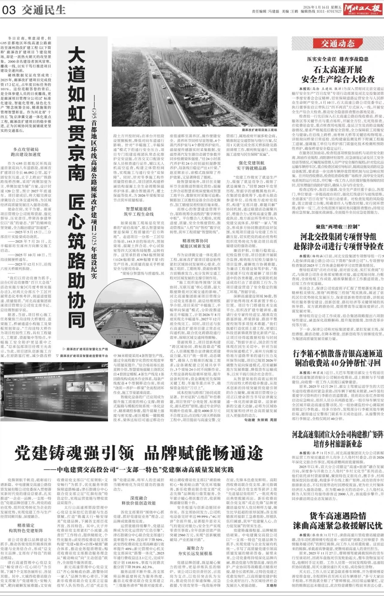 硬核数据见证攻坚成效:2025年,廊涿改扩建项目完成投资17.2亿元,占年度目标任务的101%。这份亮眼答卷的背后,是全体参建人员的日夜鏖战,更是廊涿项目管理分公司以“标准化建设、智能化管理、绿色化生产”理念统筹全局、精准施策的管理智慧彰显。作为河北省“十四五”及京津冀交通一体化重点工程,廊涿改扩建项目的稳步推进,正为区域协同发展铺就更坚实的交通基石。