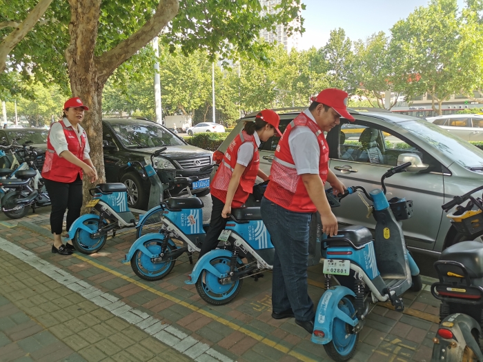文明骑行。燕赵驿行集团营销分公司利用倒休时间组织开展共享单车文明骑行宣传和规范停放志愿服务活动。共享单车不文明停放影响了交通和市容市貌,营销分公司党员志愿者将“摔倒”在路边的单车扶起来,将道路两旁随意停放的共享单车推到指定停放点摆放整齐。同时,还着重清理了占用盲道的车辆,将车辆拖、抬到了规范停车区,为盲人开辟出了安全畅通的路线。此外,志愿者们还向过往骑车的市民群众积极宣传文明骑行、有序停放的重要意义,引导骑行者将共享单车按规定停放,鼓励大家监督身边存在的不文明行为。