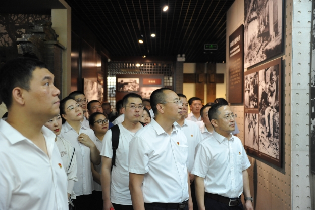 在晋察冀边区革命纪念馆,三十余名党员整齐列队,庄重地向革命先辈们敬献花篮,并在党旗前重温入党誓词,在铿锵的誓言中,初心接受洗礼,赓续红色精神。在纪念馆的展厅内,党员们通过倾听讲解员声情并茂地介绍和观看一幅幅生动的实物资料,身临其境地感受当年晋察冀边区艰苦卓绝、波澜壮阔的抗日武装斗争。一桩桩事迹、一个个壮举、一张张图片让党员们深深感受到中国共产党人为国家独立、民族解放而英勇斗争、不怕牺牲的精神,共同感悟共产党人对信仰、信念、信心的坚守与执着,精神受到洗礼,思想受到启迪,灵魂受到震撼。