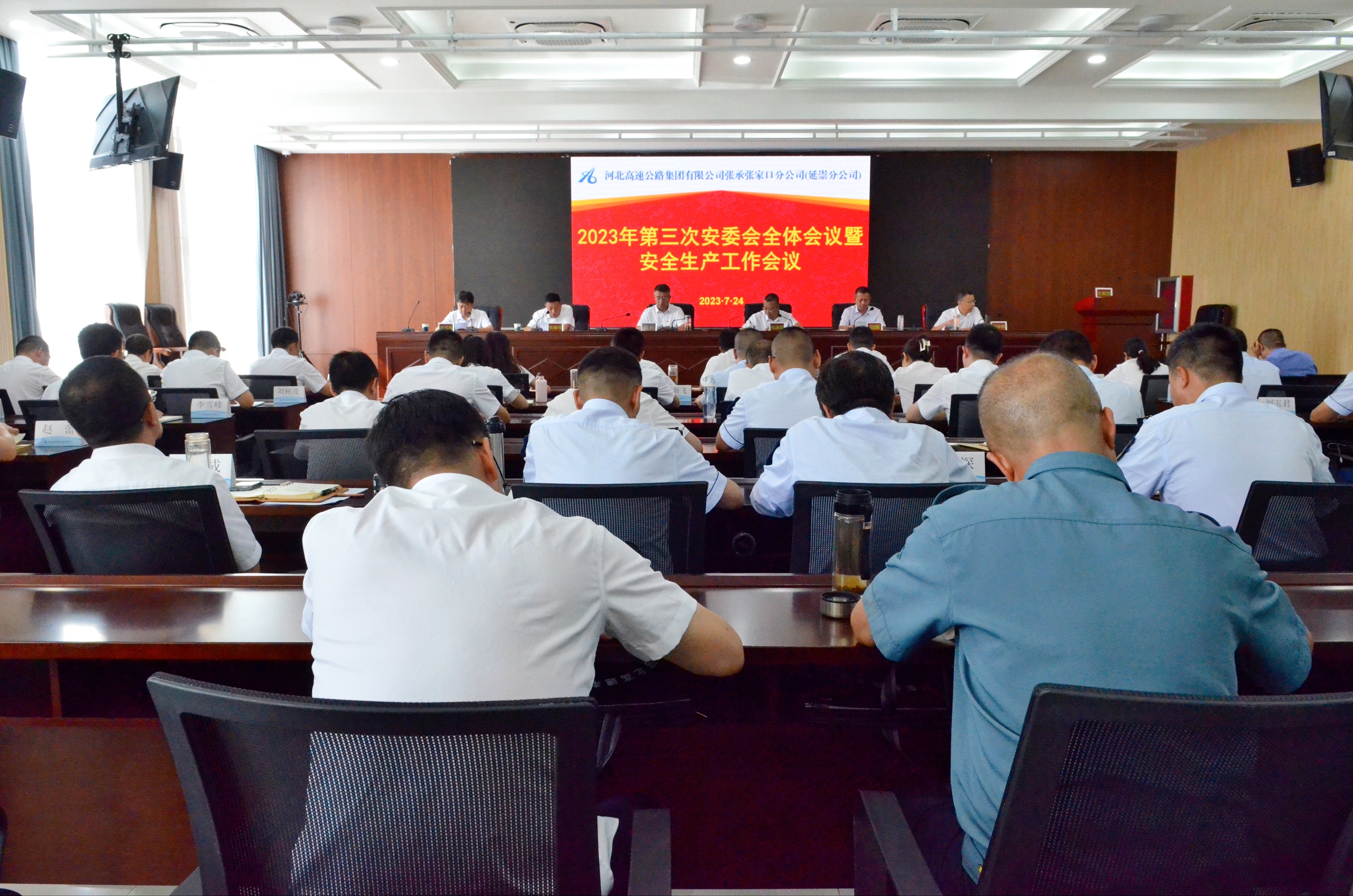 7月24日,张承张家口分公司(延崇分公司)召开2023年第三次安委会全体会议暨安全生产工作会议。传达了习近平总书记关于安全生产及防汛救灾工作的重要指示批示精神和上级安全生产工作会议精神,分析总结了分公司上半年安全生产工作,并安排部署下阶段重点任务,听取了把图湾收费站、怀来北隧道管理站、崇礼养护班组安全生产工作汇报。会议指出,2023 年上半年,在集团公司党委的坚强领导下,分公司深入贯彻落实习近平总书记关于安全生产的重要指示、批示精神,严格落实“三个必须”和“五落实,五到位”工作要求,顺利完成了“春运”“两会”“清明”“五一”等重点时期安全保畅任务,未发生安全生产责任事故,安全生产形势持续健康稳定。