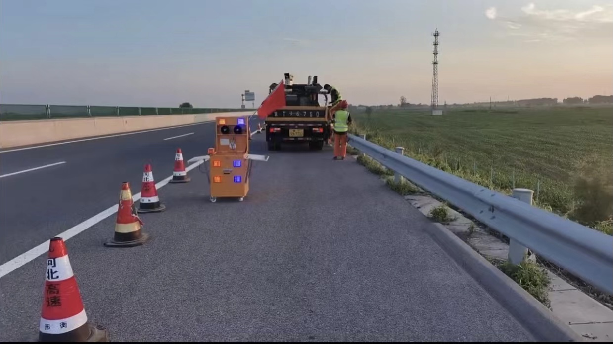 三是进行安全设施设备现场测试。为测试高德智慧精灵和多能能摇旗机的现场使用效果,衡水分中心模拟社会车辆通过施工作业区位置,通过实地测试后,高德预警精灵智慧锥筒灯可以在高德地图上准确显示出施工位置,并提前5km和2km对开启高德地图的车辆进行预警,多功能报警摇旗机利用声、光、动三位一体的模式有效提醒过往司乘人员及时发现施工作业区,提前采取避让措施,使过往车辆和施工人员均可处在一个安全畅通的环境当中,降低施工过程中的安全隐患,大大提高了施工作业的安全性。