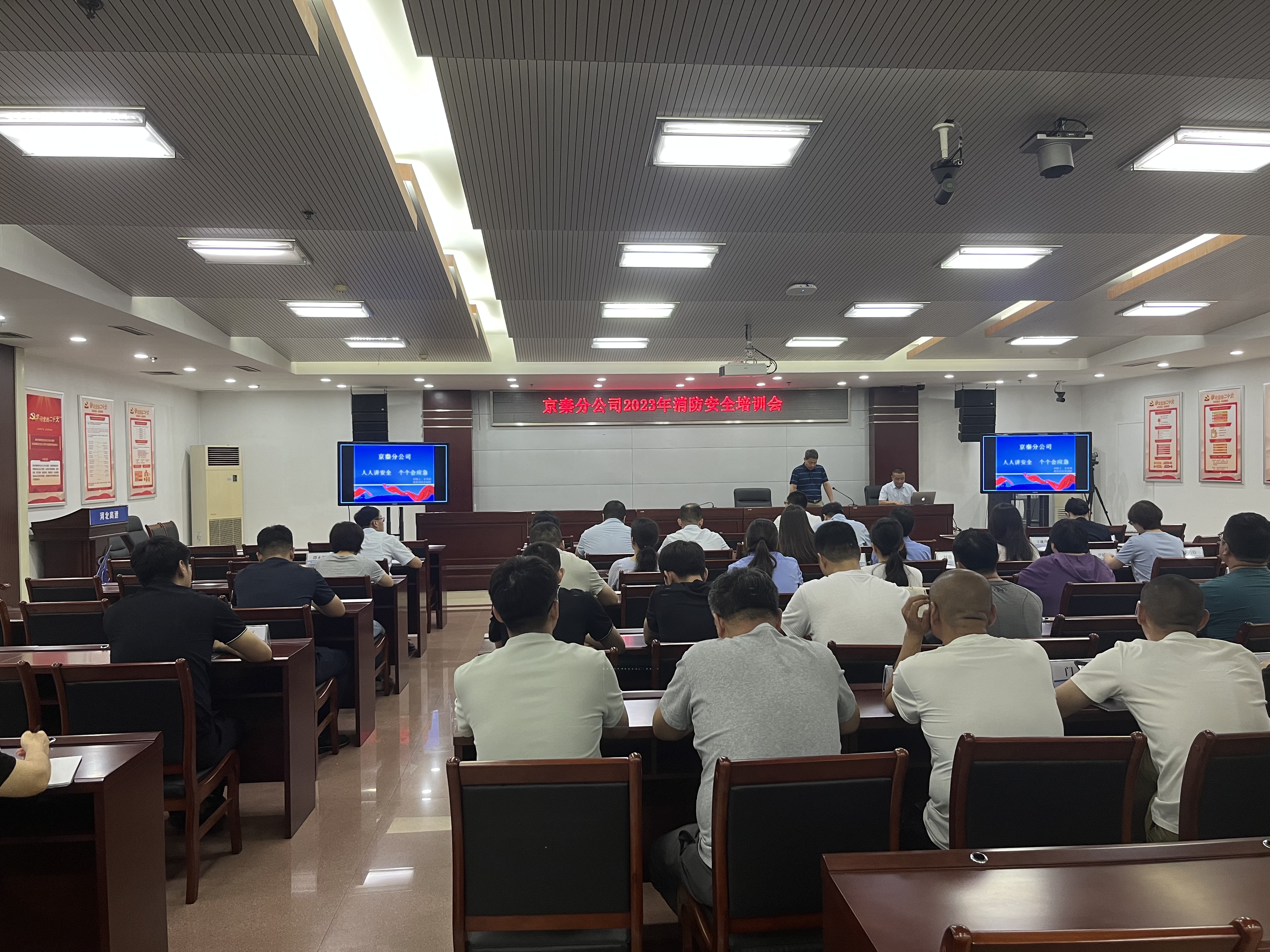 为进一步增强消防安全意识,加强消防“四个能力”建设,8月18日,京秦分公司组织开展2023年消防安全培训及演练。培训采用现场讲解和电视电话视频连线形式,设1个主会场和14个分会场,约180人参加。