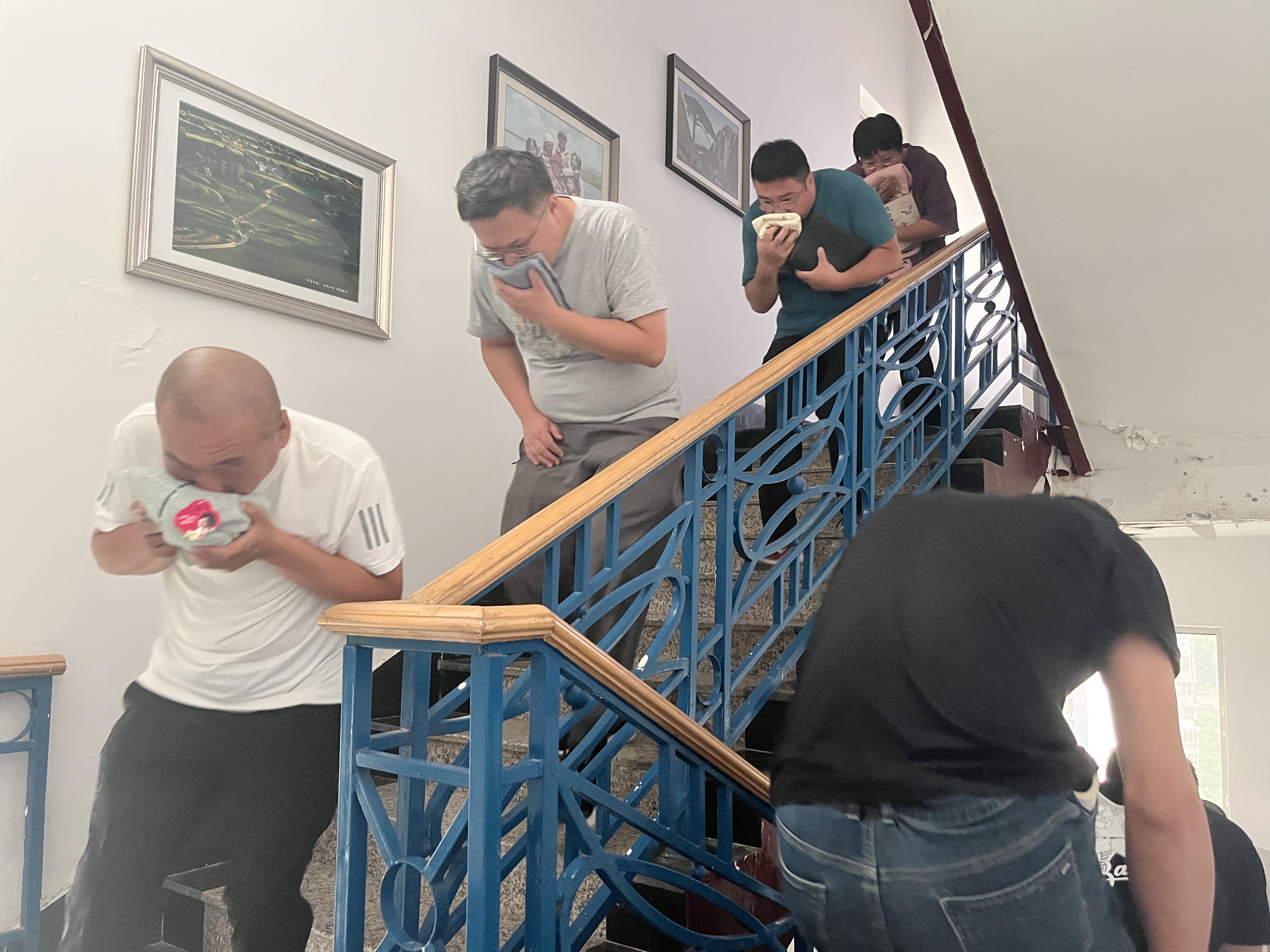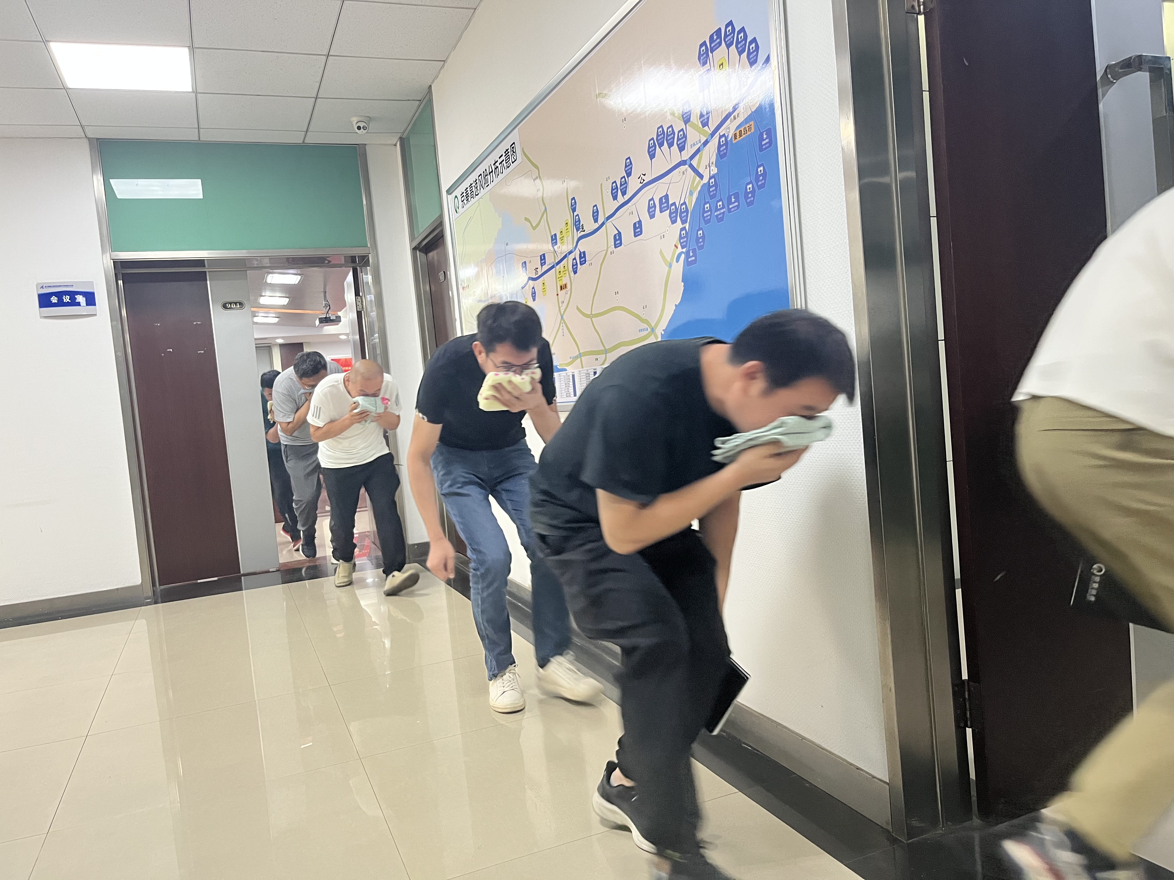 为提升理论知识运用成效和火灾逃生自救能力,随后组织主会场参会人员进行了应急疏散逃生演练和火灾扑救演练。